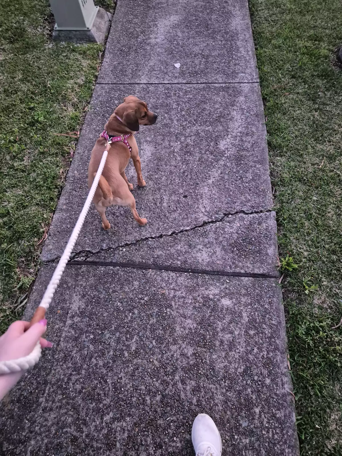 Whe has lots of energy and loves going for walks.