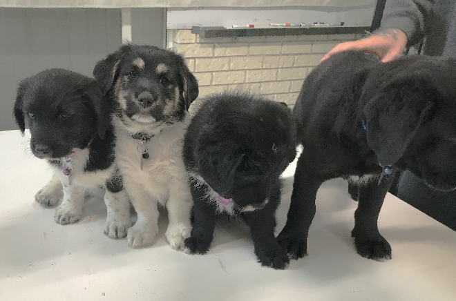 Dogs have access to: warm bedding, water at all times, ample space to exercise, natural light