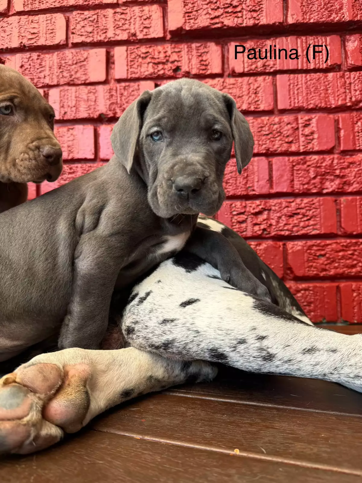 We have 6 adorable Danif puppies (Neapolitan Mastiff x Great Dane) seeking their forever families. They’re all girls, with four of them having beautiful blue eyes. 😊