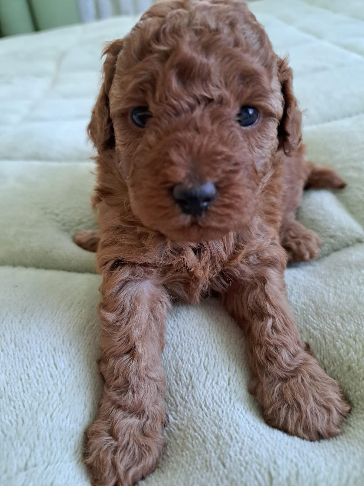 They are Toy Poodle puppies 4 months old, red. 3 puppies: 2 male and 1 female.