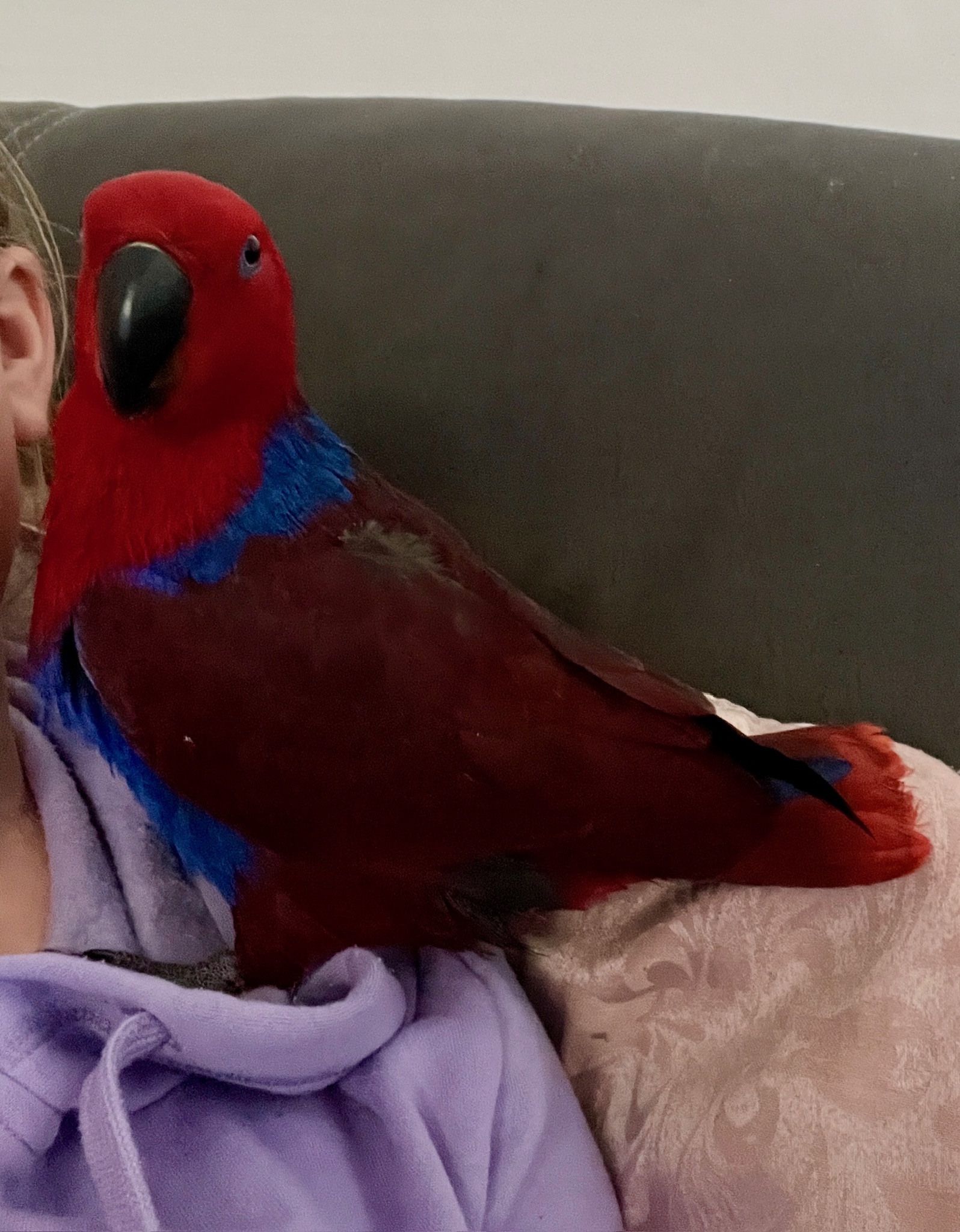 Holly is an almost two year old hand raised eclectus parrot. Her hatch date is October 2nd 2023.