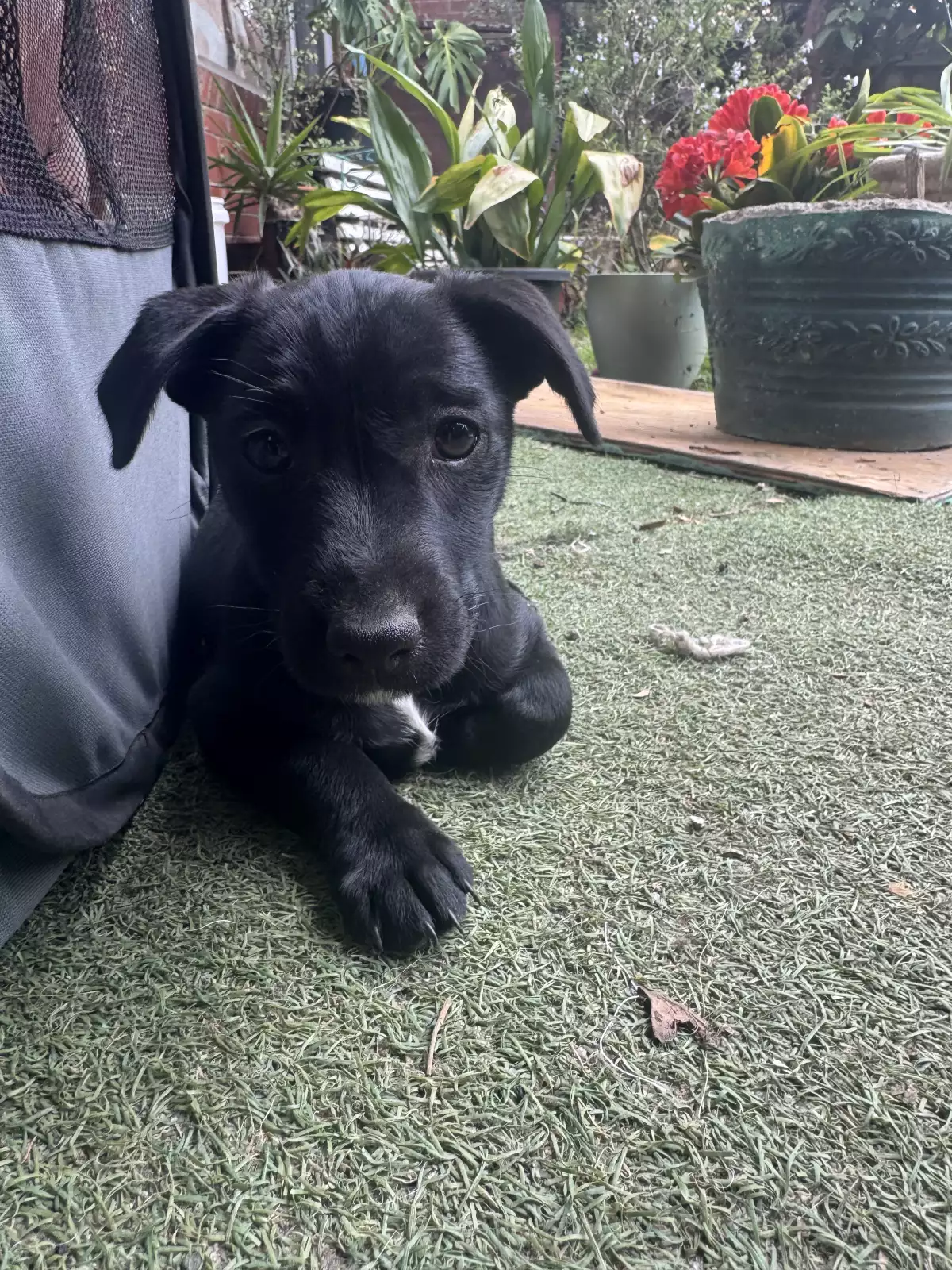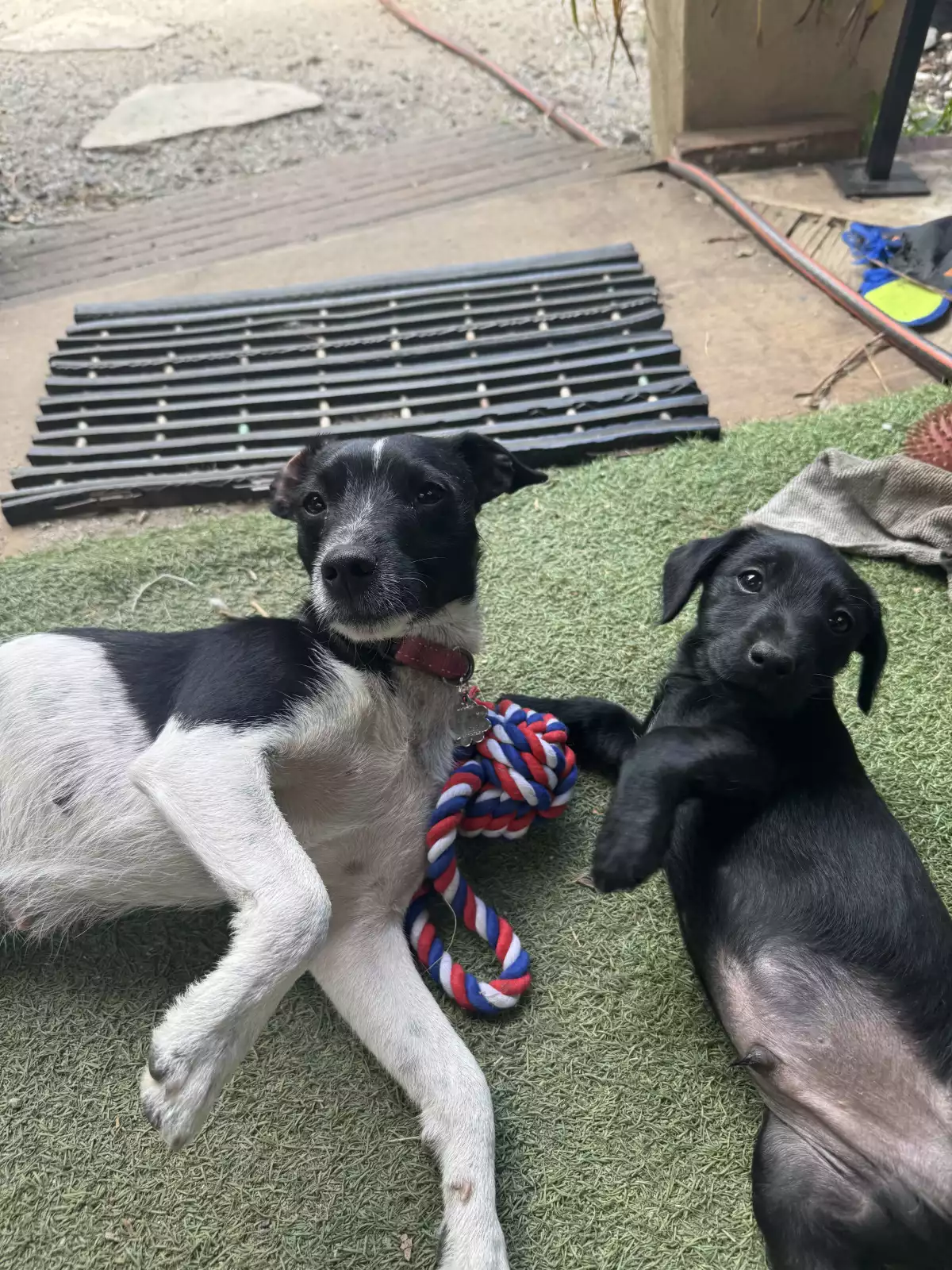 Our pups get plenty of exercise and stimulation both inside and outside. They have both shared and independent sleeping areas inside and outside too. At the moment they’re happy playing and sleeping in the patio and yard areas all day. They sleep inside overnight.
