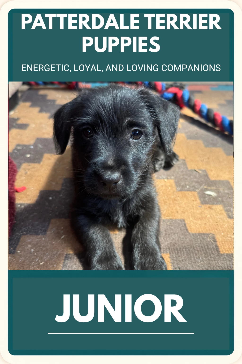 Patterdales are high-energy, intelligent, and loyal terriers. They’ve got a fair bit of tenacity. Originally bred as working dogs, they thrive in homes that can provide plenty of exercise, stimulation, and companionship. I would say they’re closest to a Jack Russell Terrier, Foxy or Mini Fox Terrier, with a similar size, shape, coat, energy and vibe. They make wonderful family dogs for active households and also excel as working partners or adventure buddies. These are some smart pups with great instincts and they’re fast keen learners if you can keep them engaged. While not a recognised “pedigree’ dog, I can assure you these are real dogs, and a real breed, and real cute to boot.