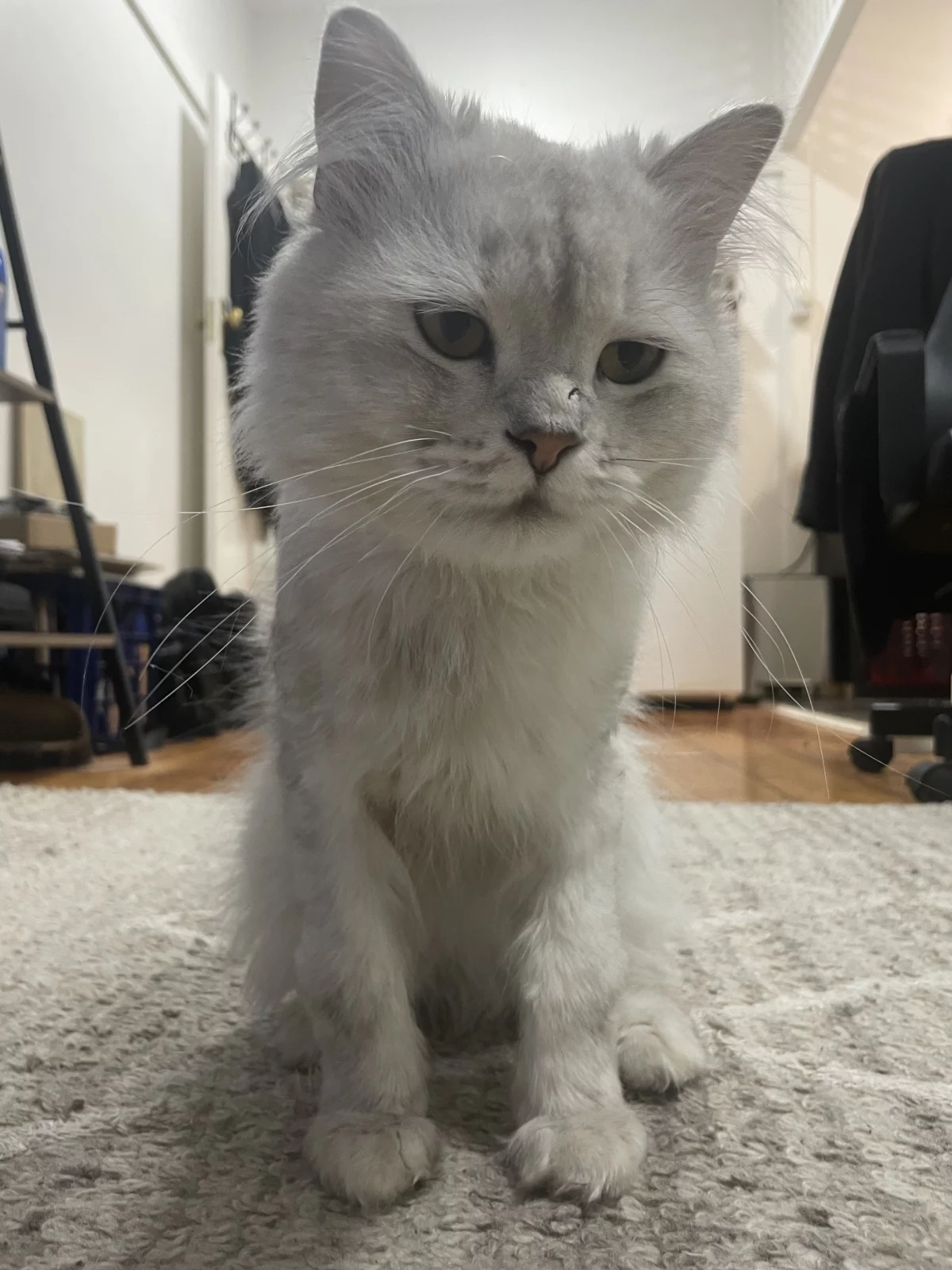 This stunning boy is a Silver Persian– 2 years old, with an incredibly soft long coat and the sweetest nature. It’s very rare to find an adult cat with this temperament and colouring.