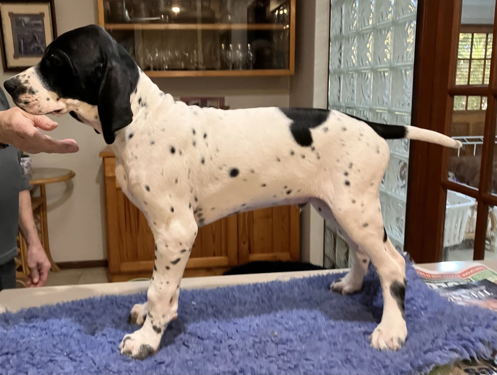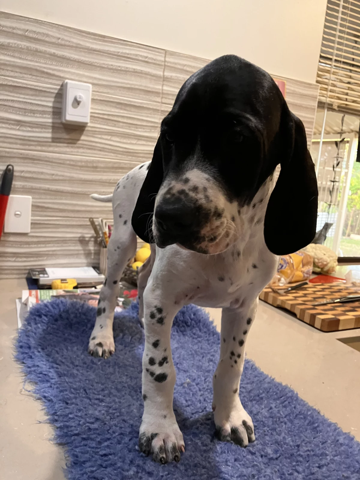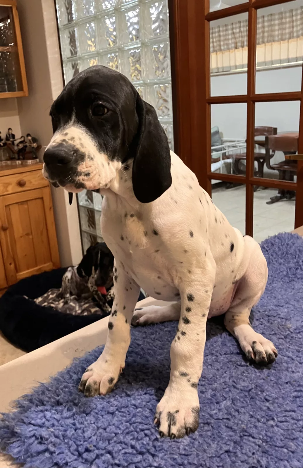 This beautiful 12-week-old English Pointer male puppy is now ready for his forever family. He comes from a strong pedigree, ensuring he inherits the best traits of the breed. He is fully vaccinated, microchipped, and has been regularly wormed, with all certificates provided.