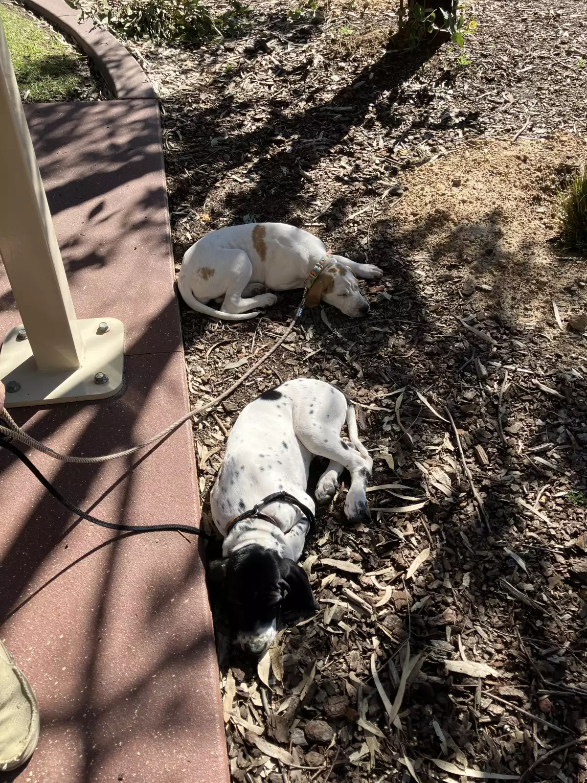 Dogs have access to: warm bedding, water at all times, ample space to exercise, natural light
