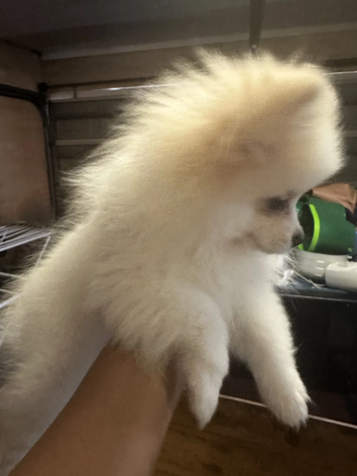 Born on 7th January 2025, this gorgeous cream female Pomeranian is now 16 weeks old and ready to bring love, fluff, and fun into her forever home!