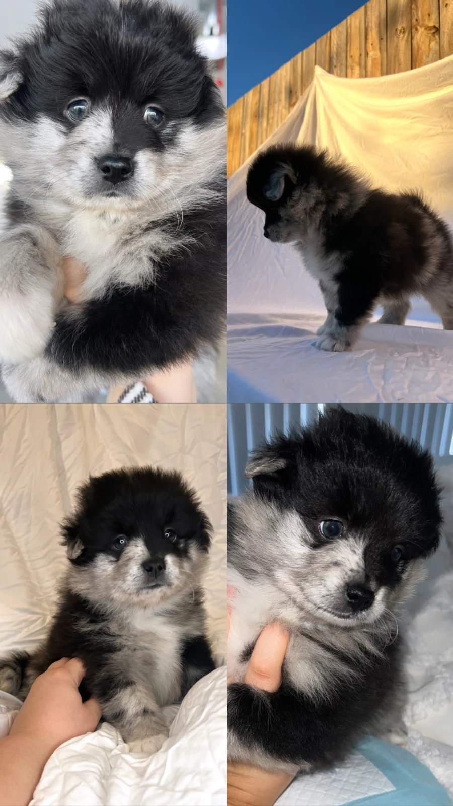 2. 🖤❄️ Merle Female (Black & White) – Striking Blue Eyes – $3500 — GONE TO A LOVING HOME