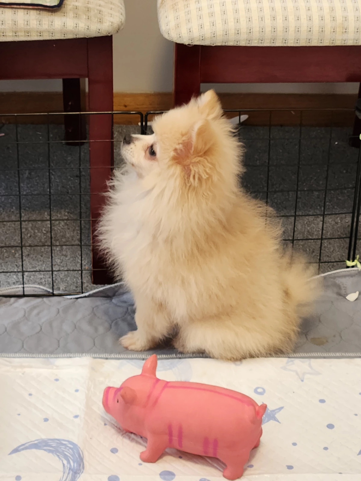 Less than 6-month-old female Pomeranian who is healthy and has been well cared for. She was originally received as a gift, but unfortunately due to ongoing health issues, a new home had to be found where she could receive the care and attention she deserves.