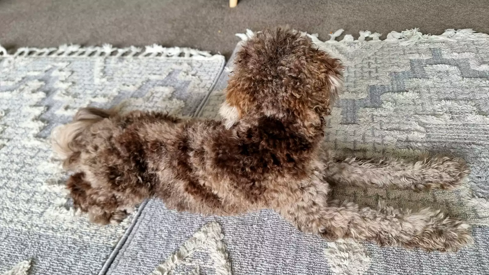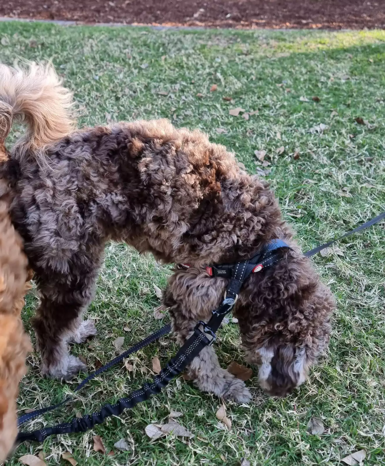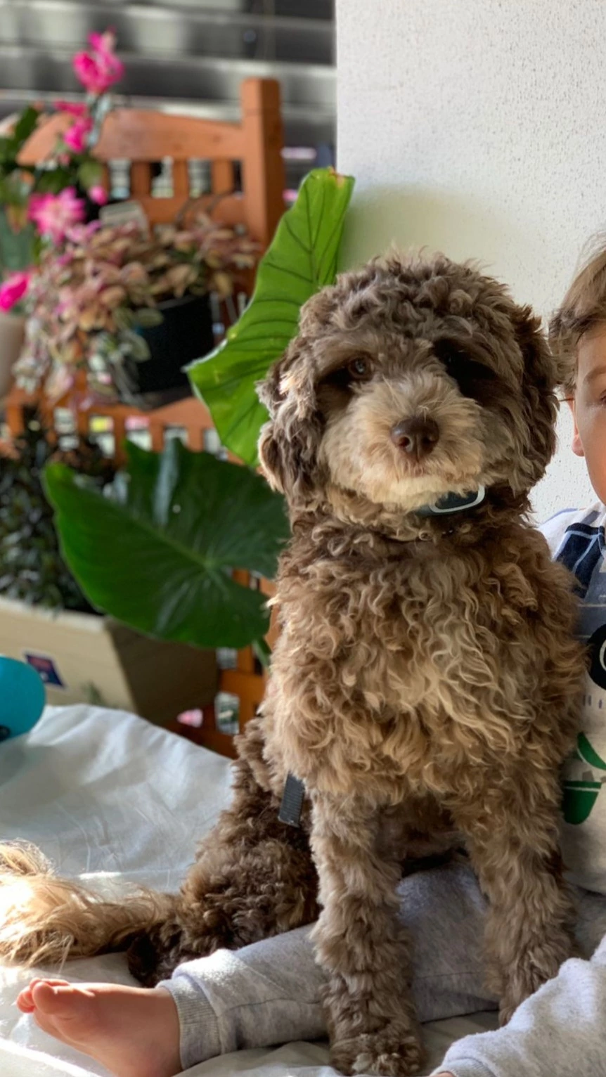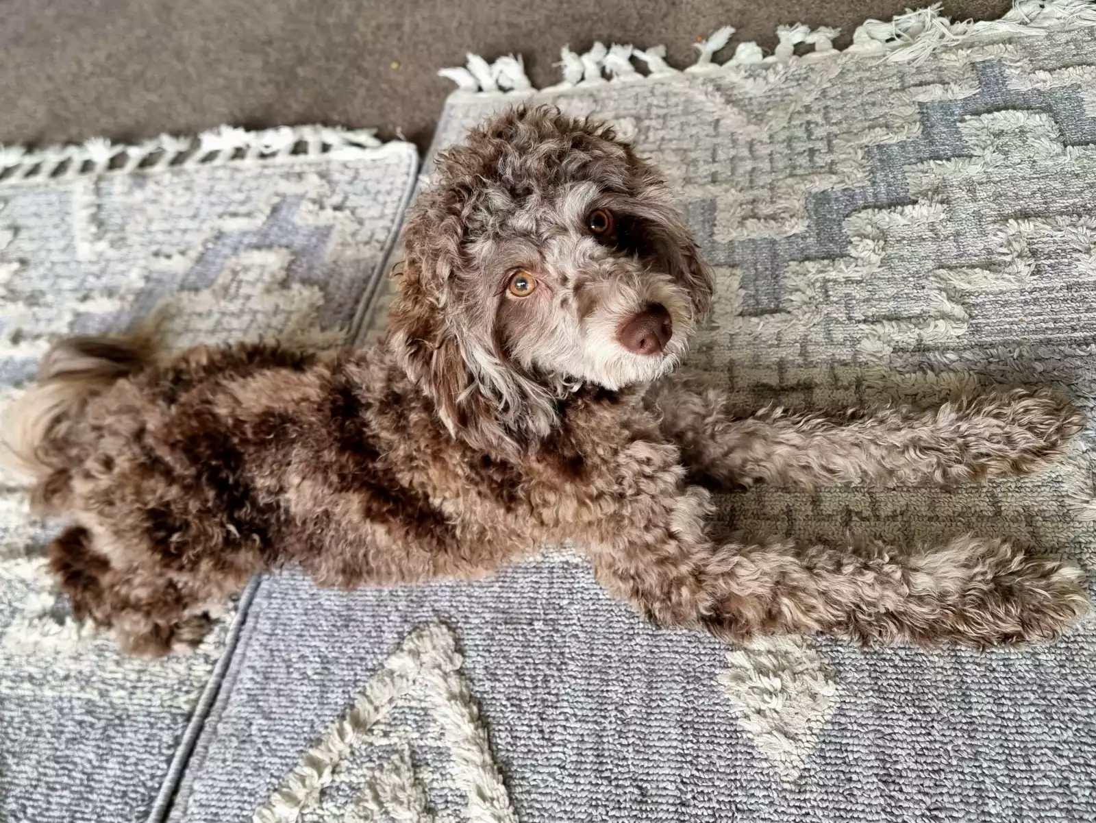 Unique multi colour, brown, grey, white, black, red with chocolate strips, he always gets WOW comments on his fur colour when out for a walk