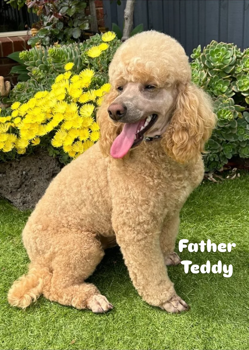 Mum, Penny is an Apricot Miniature Poodle and Dad, Teddy (not owned by us) is an Apricot Miniature Poodle.