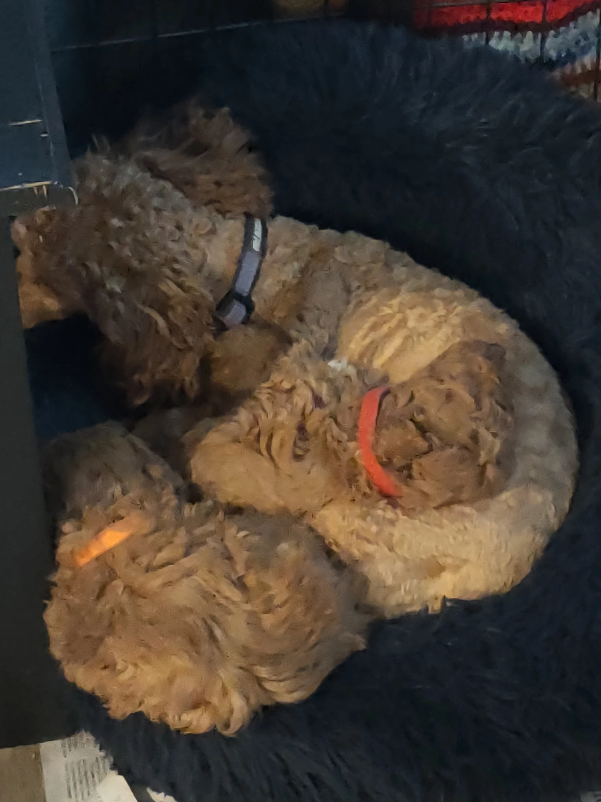 Dogs have access to: warm bedding, water at all times, ample space to exercise, natural light