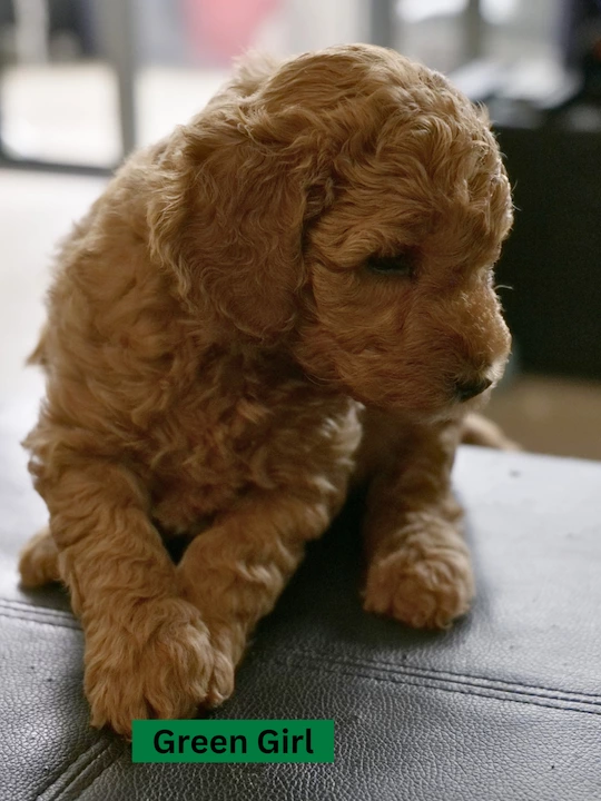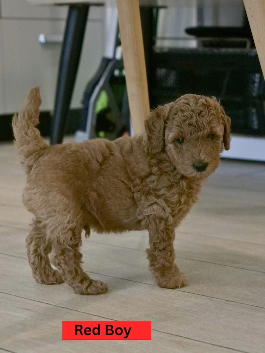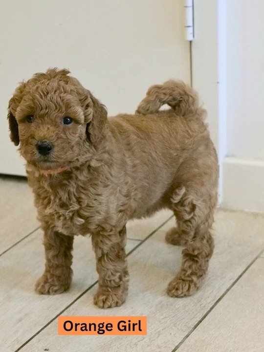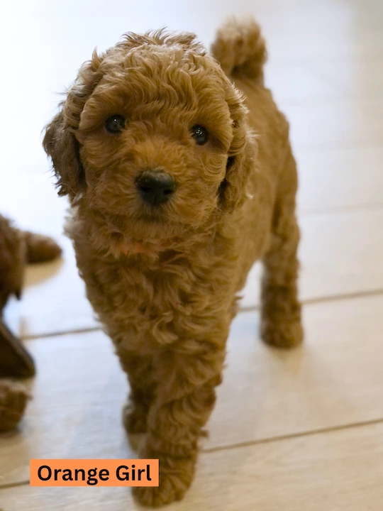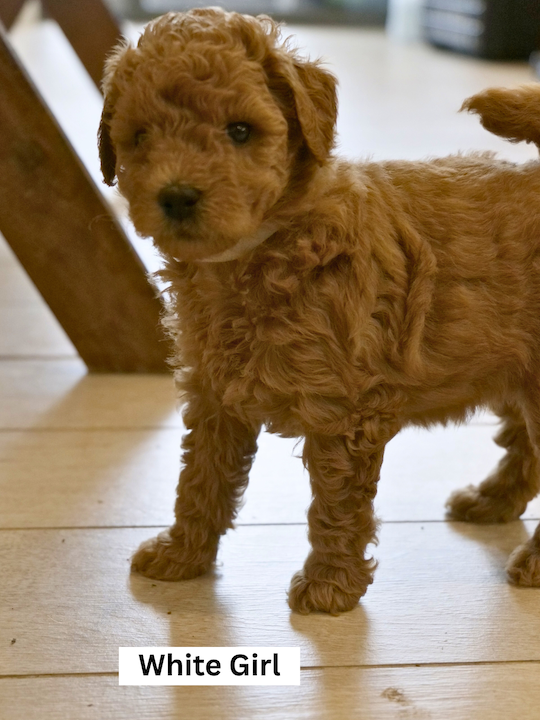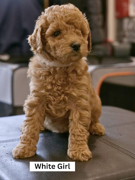 4 puppies are available for sale. 1 boy and 3 girls, all with apricot-toned coats.