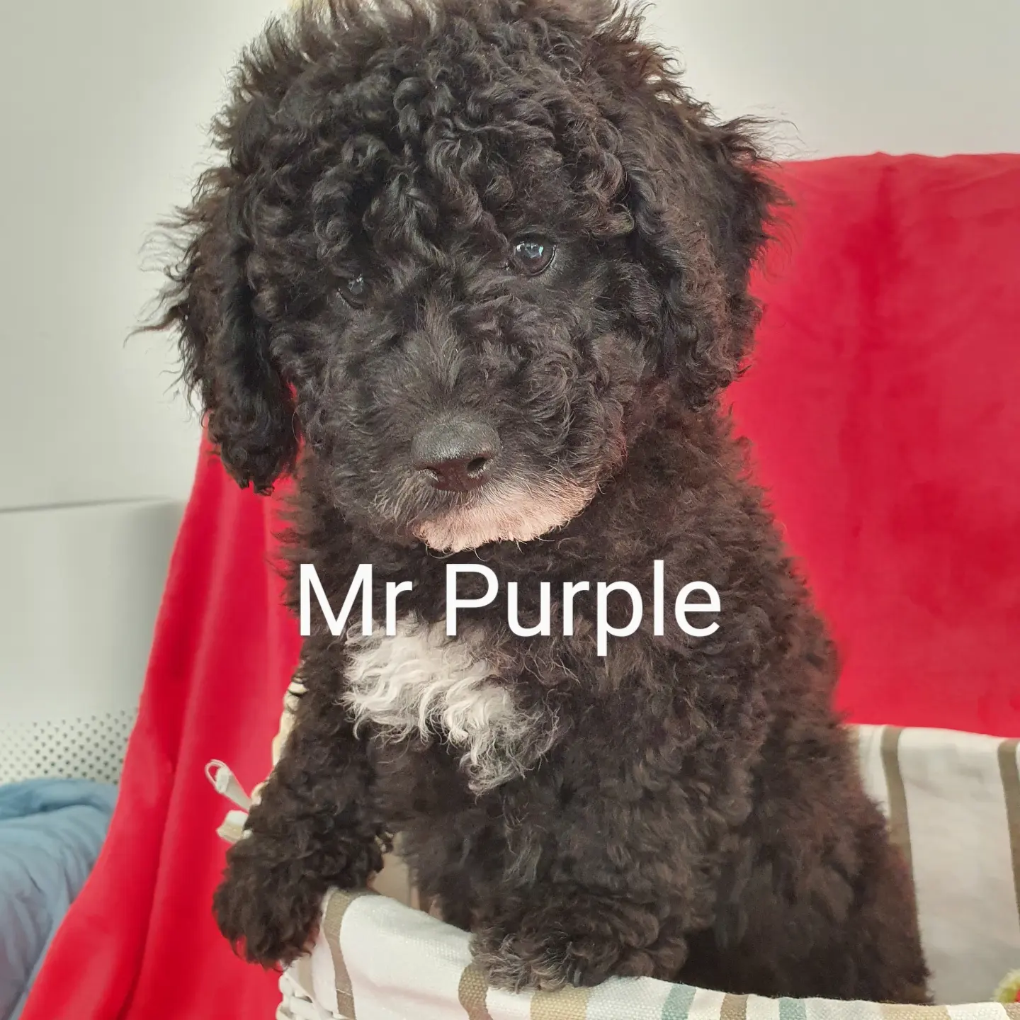 MR PURPLE. Black with white chest and chin.