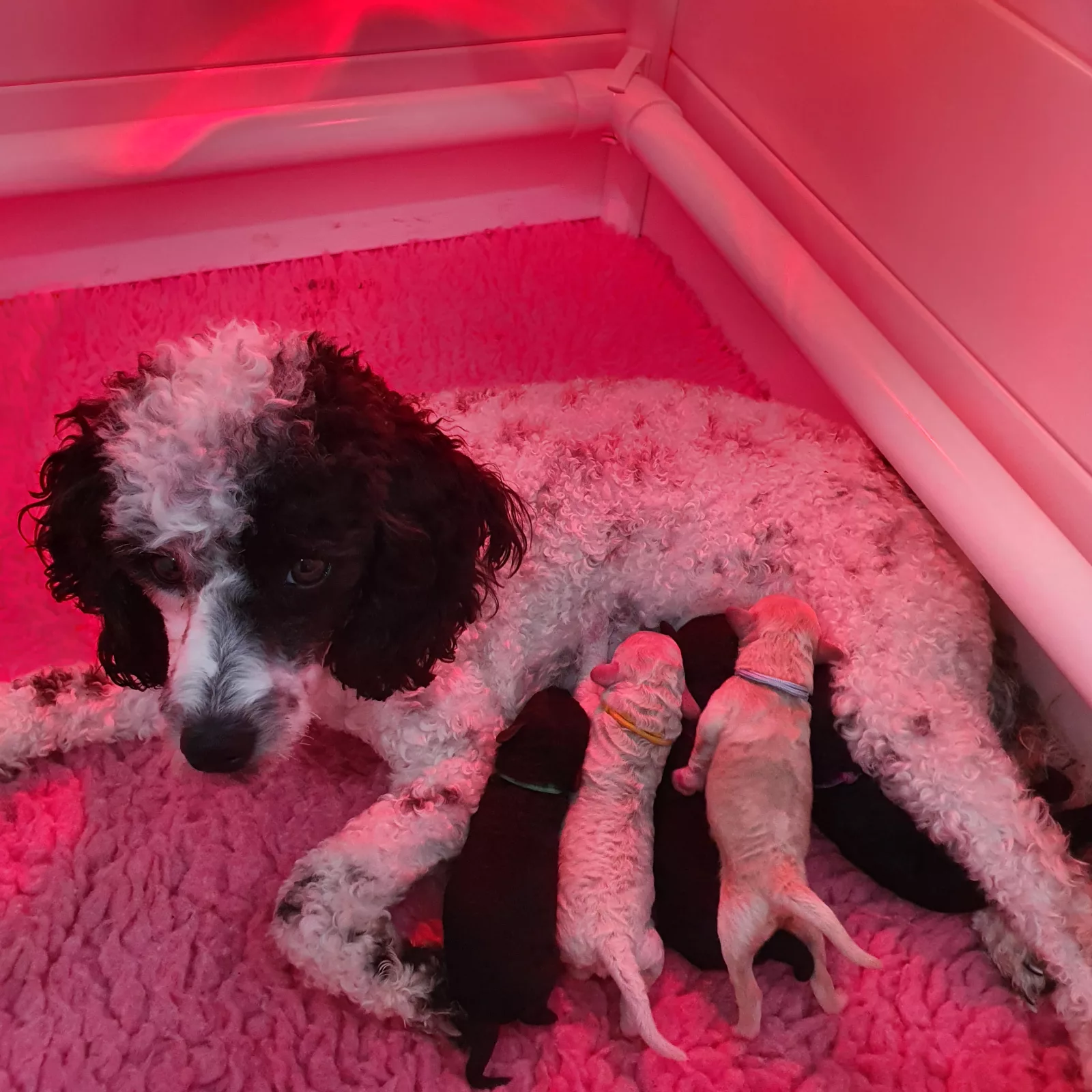 Mum is a White and black Parti Mini Poodle.