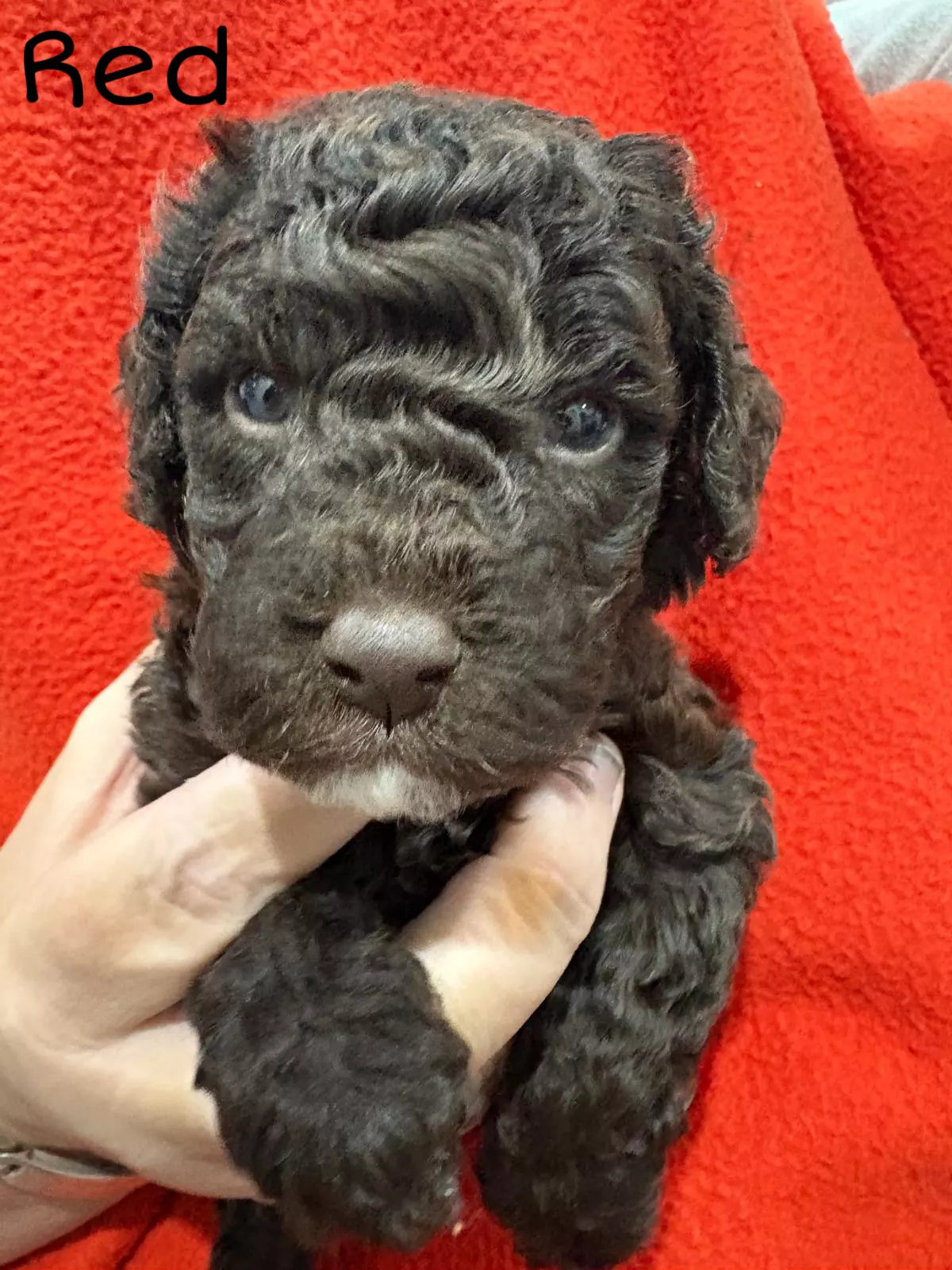 Pup 2 (Red) – Male, Brown, with white goatee, back feet and chest $1500