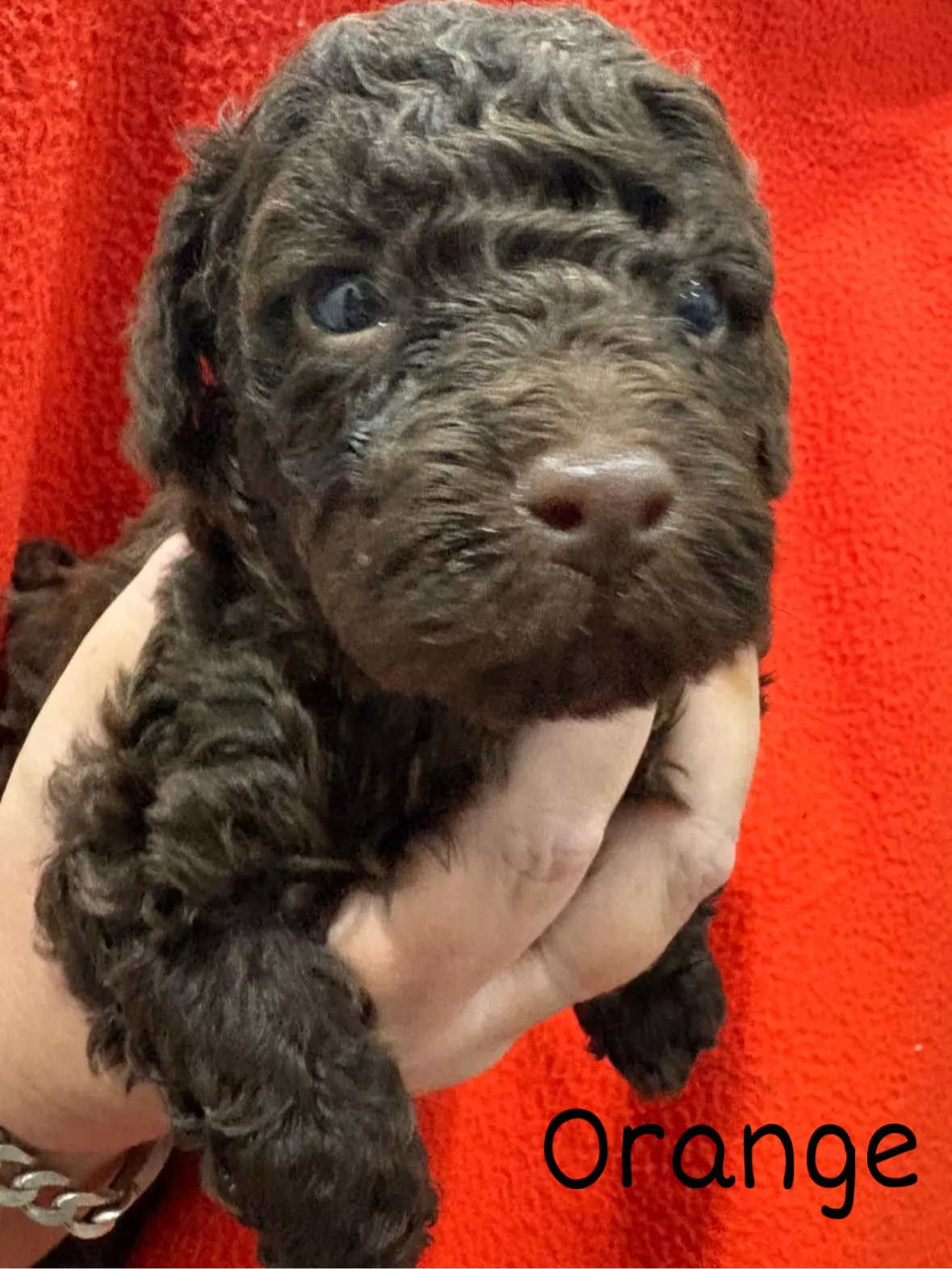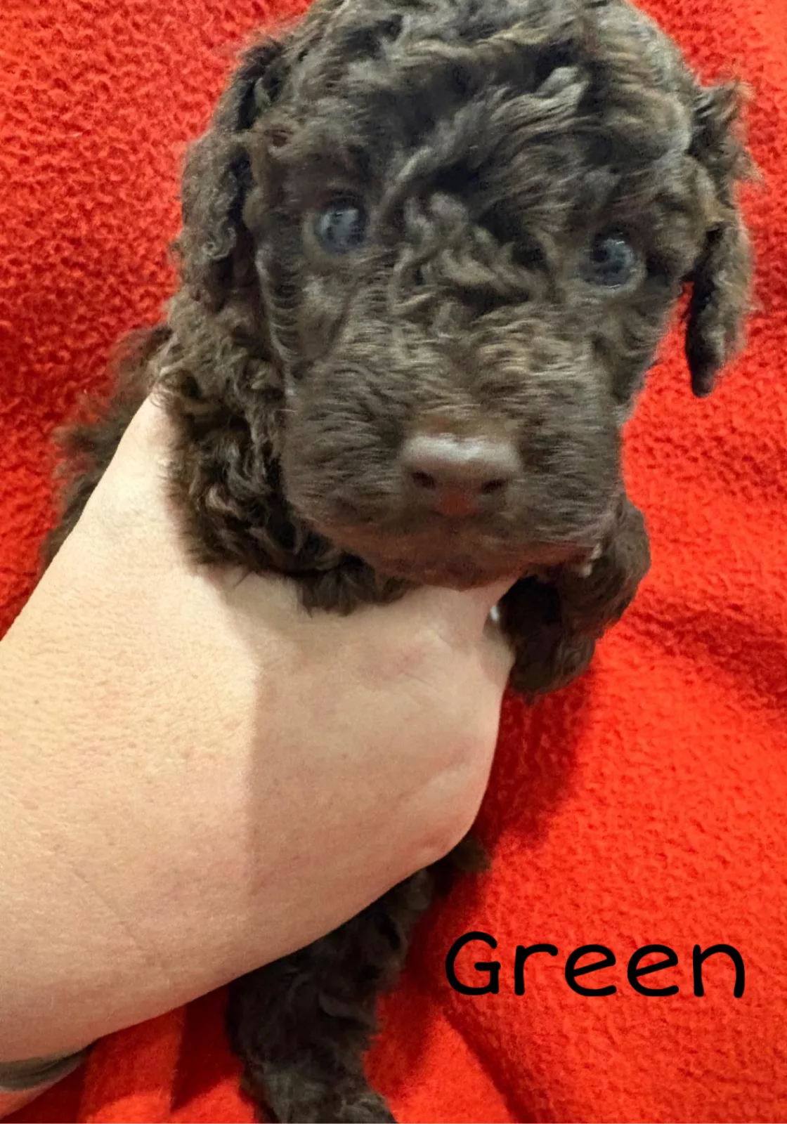 Pup 1 (Green) – Male, Brown, with tiny white fleck of white on his chest $1500
