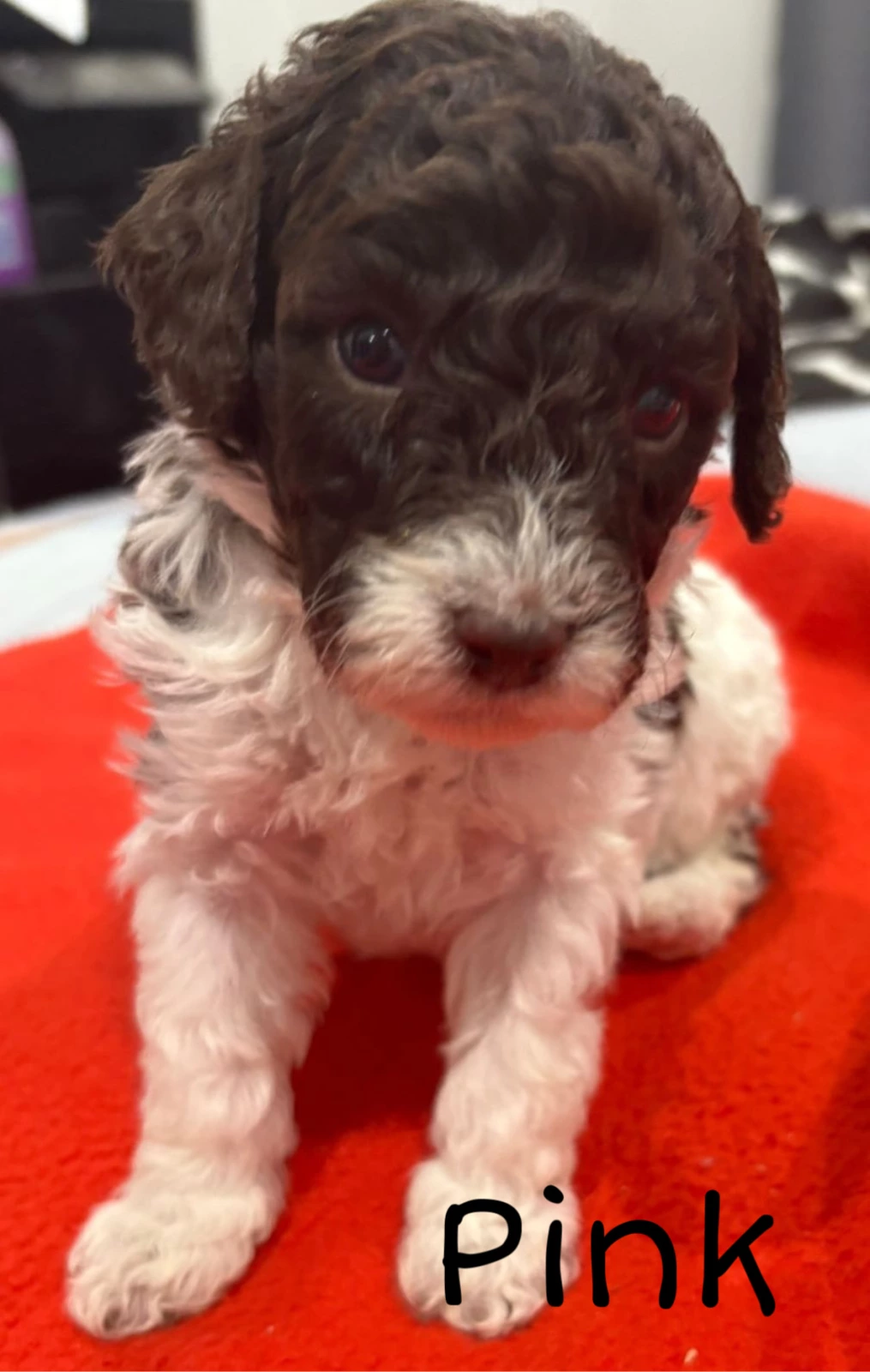 Pup 6 (Pink) – Female, Parti Brown & White SOLD