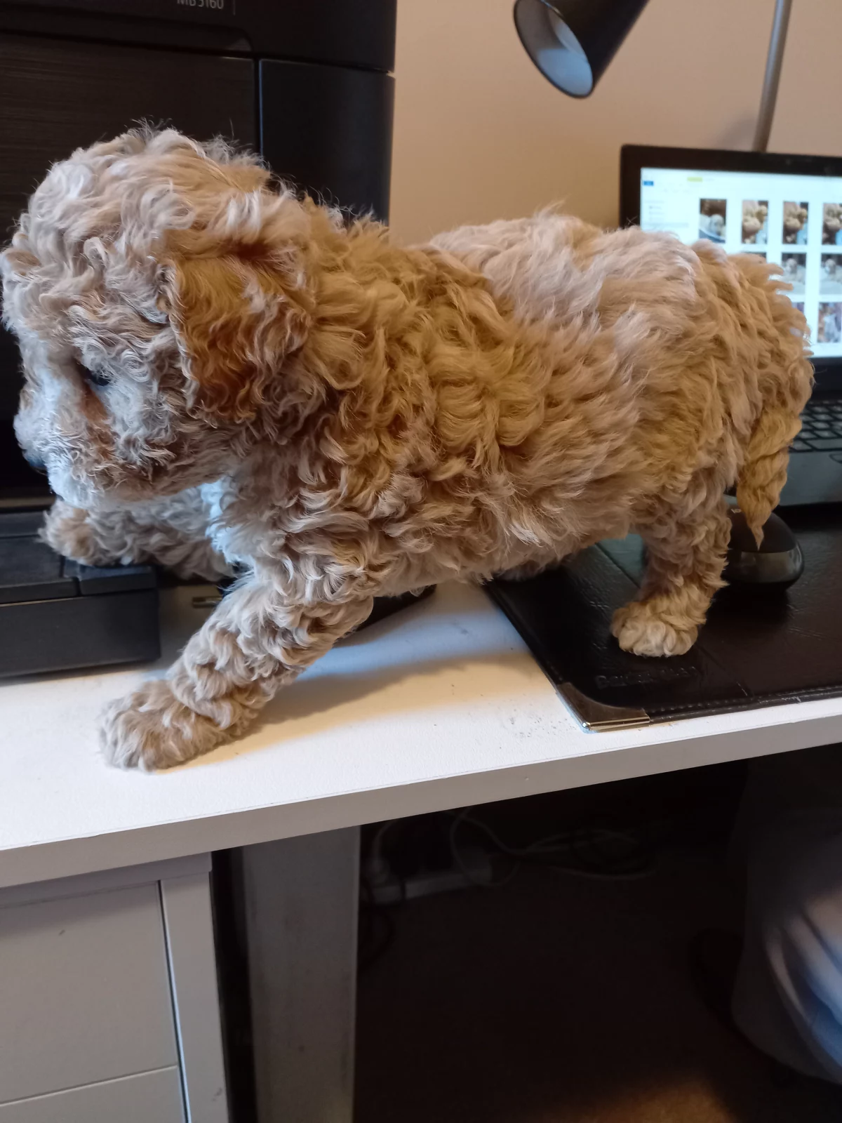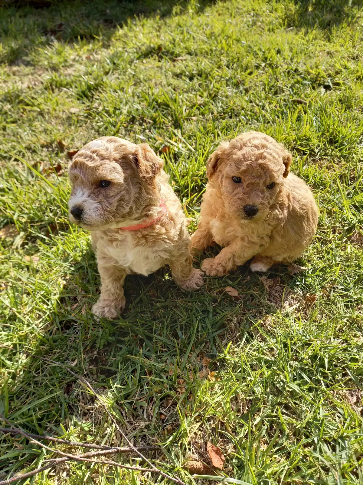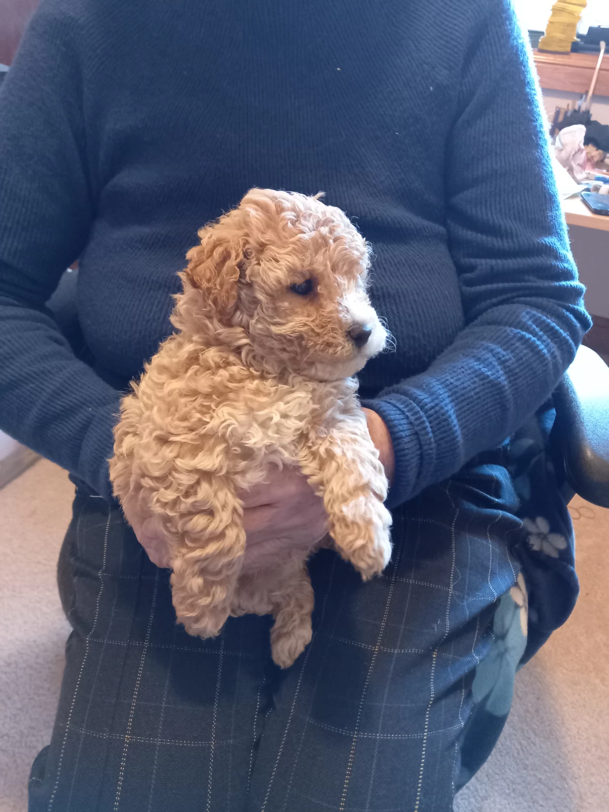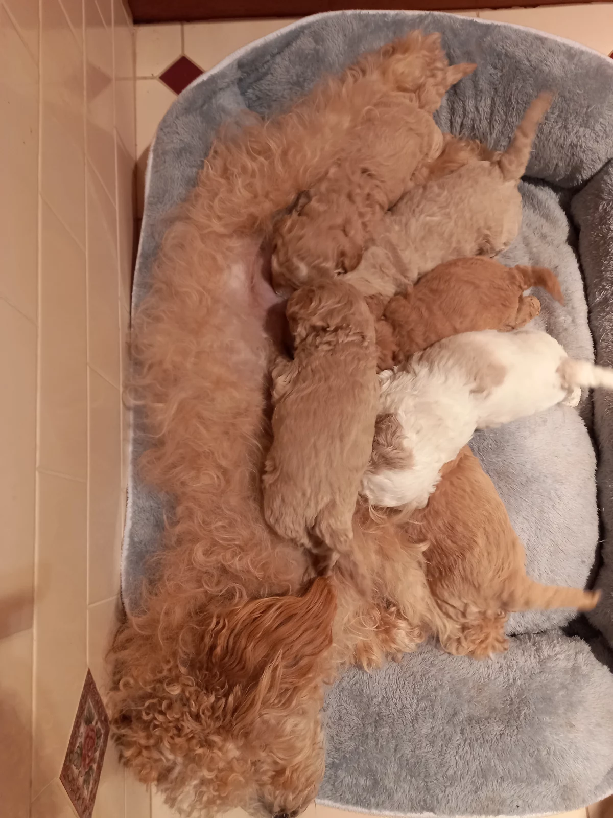 Bichon Poodle Pups. Hypo allergenic. Available now. 3 males and 2 females. Full DNA profile available for both parents. Microchipped, wormed and vaccinated. These puppies have been house raised with cats and are an ideal breed for families or the elderly, loving either a nap on your lap or a run around the block. Easy to train, they are very loyal and will bark if a stranger approaches the house. They are, however, friendly and cuddly with family and friends. Their curly hair is easily groomed at home and requires cutting every few months as it does not shed but keeps growing. A loyal, intelligent, loving breed, they will be 7 - 10 kg when fully grown. These happy, undemanding dogs will be a joy for all. Details for each pup are;-