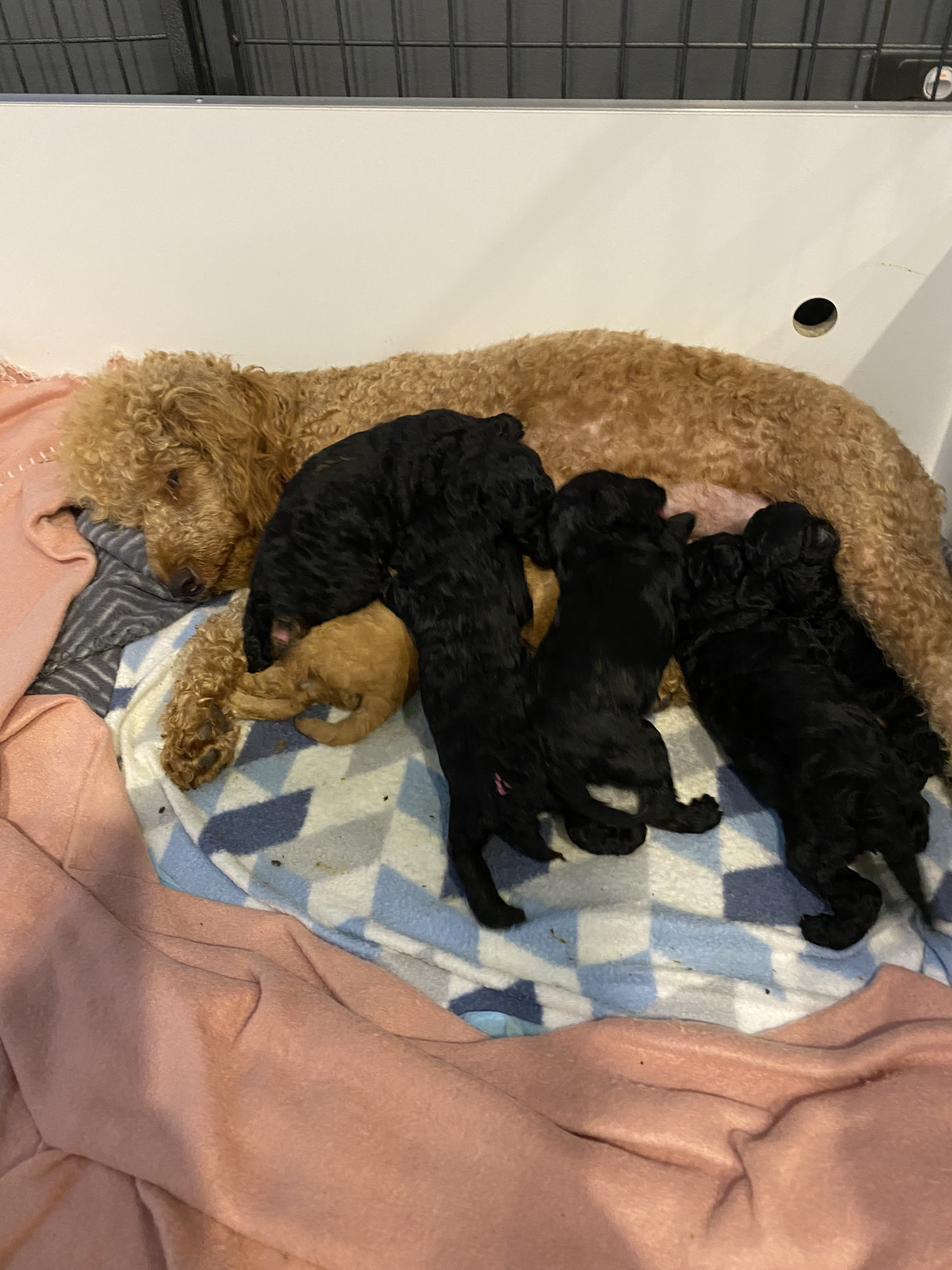 This is an outstanding litter of 6 puppies. 5 Blacks. (2 Female 3 Males) and one Red Male Puppy