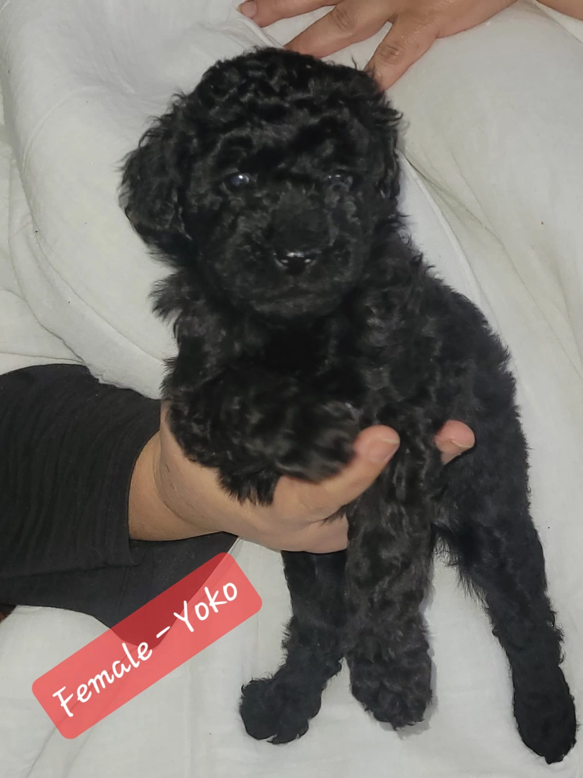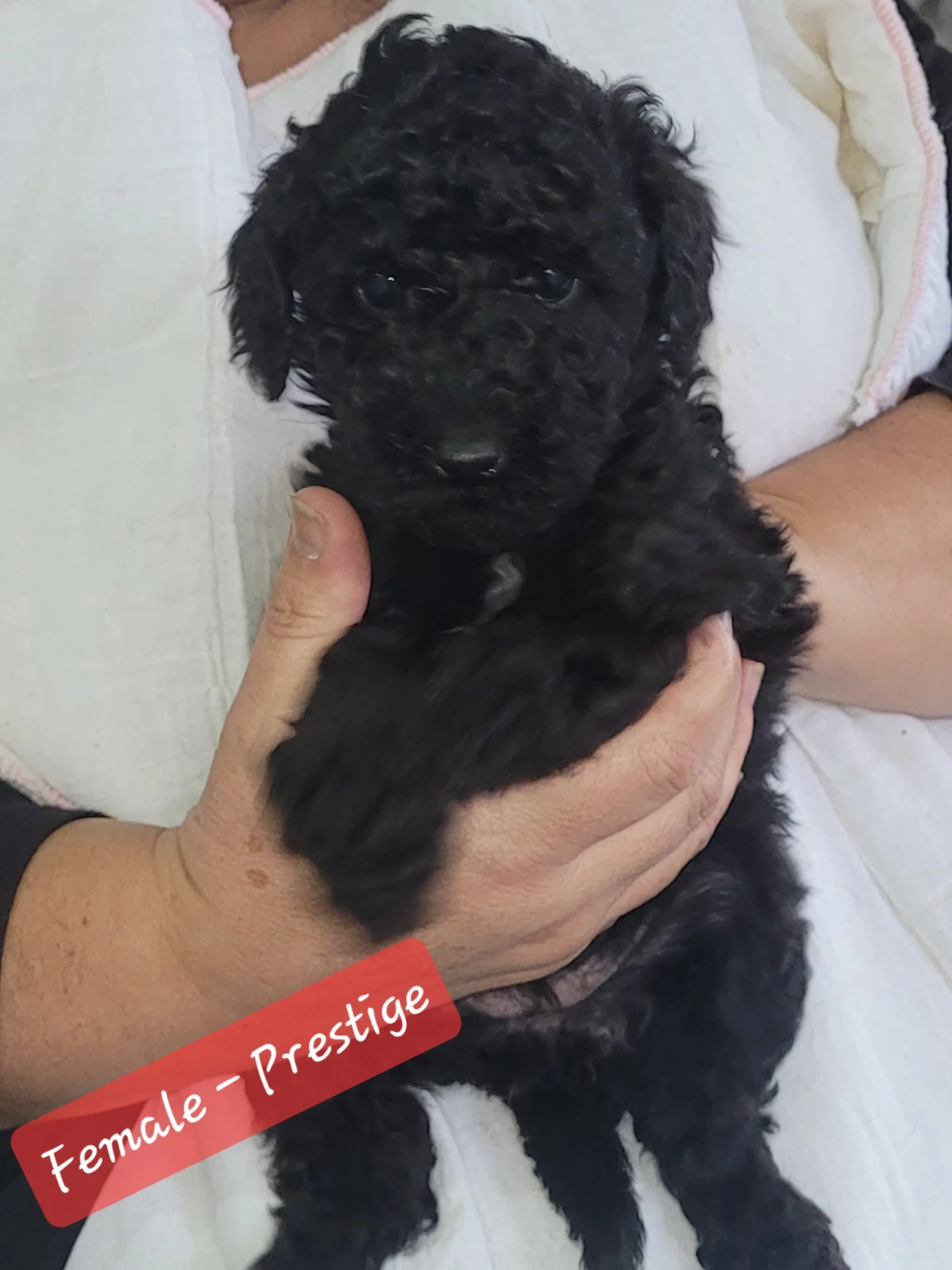 “I am a seasoned poodle owner, and I just had to write and tell you how impressed I am with my gorgeous Baby girl and the service you deliver! I was impressed at the first meeting, all the dogs and puppies were so friendly, and got along so well, really beautiful well trained, well groomed poodles! It was hard to pick a puppy, but She picked me!! I have to say I was gobsmacked when she did indeed seek out the puppy training mats to pee and poop from the second She arrived home! AMAZING!!! I expected to be up all night but She slept straight through, didn't cry at all, in a playpen in Her new bed. Its been 3 days now, and She is just a delight, She’s feisty, plays with our 7 year old poodle, very well socialised, and entertains herself for ages! I cannot thankyou enough, I’m still waiting for Her to pick Her name, but She has found a huge place of my heart, and that of all the family. Cheers, Joanne Carol”