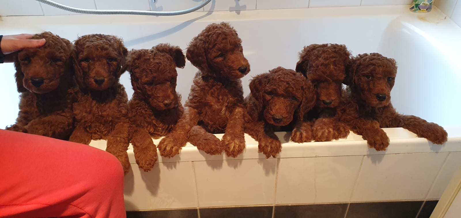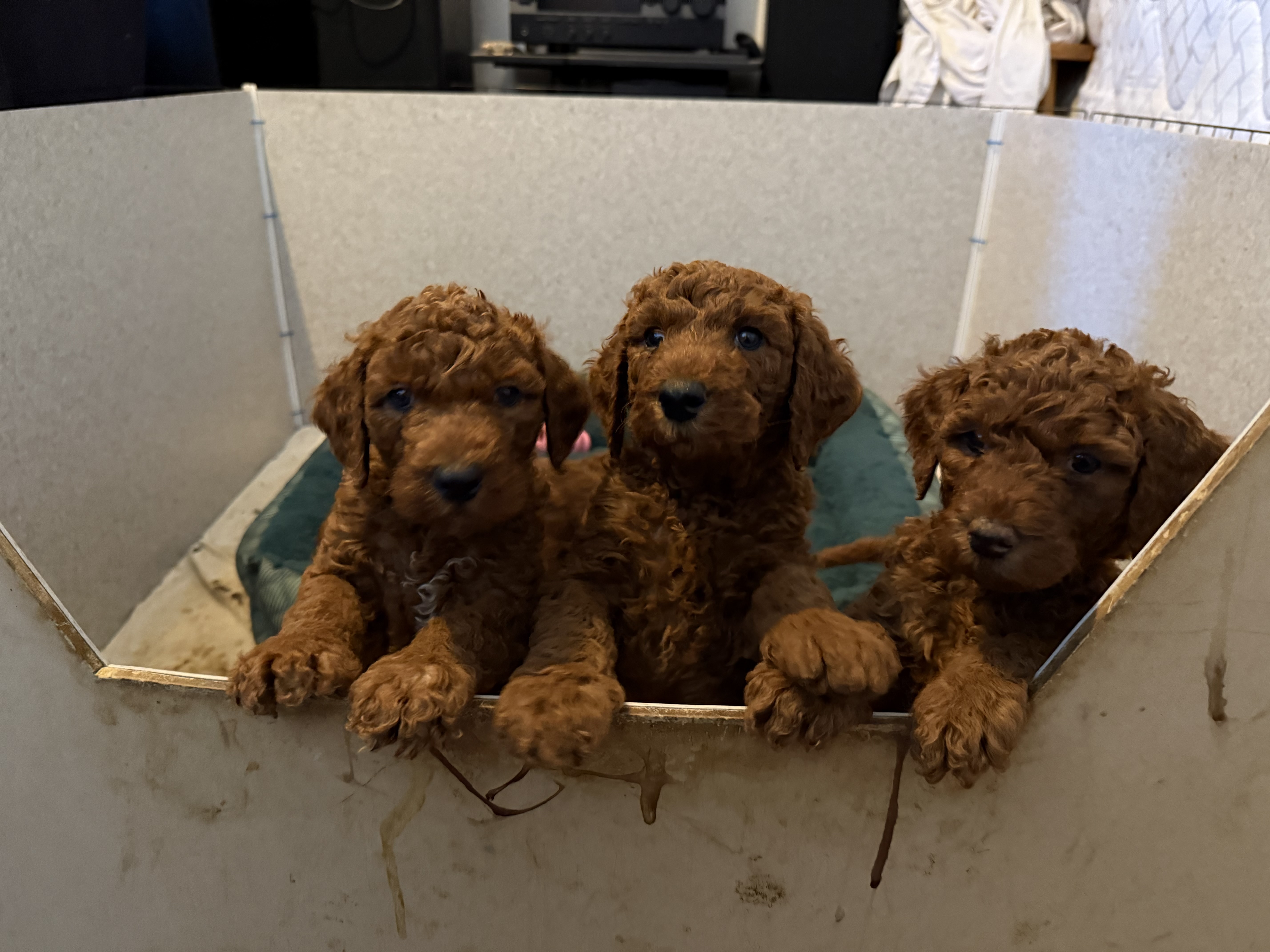 Each pup has developed their own little personality but are very good with kids and other animals. They love playing with everything and will love new things to be introduced.