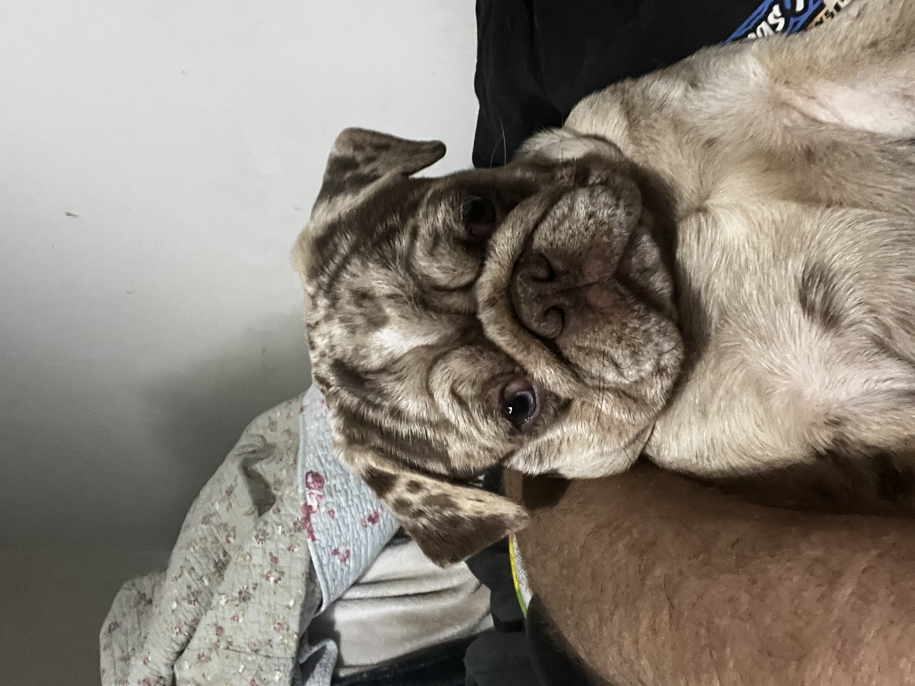 Dad is chocolate Merle with both eyes half half blue and half brown and is papered