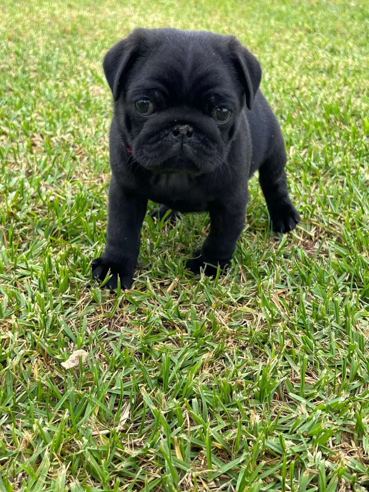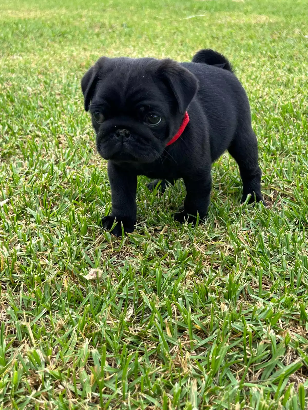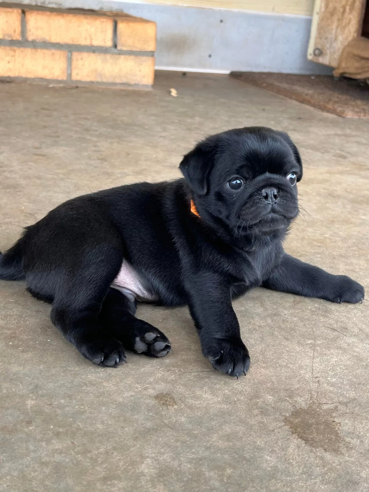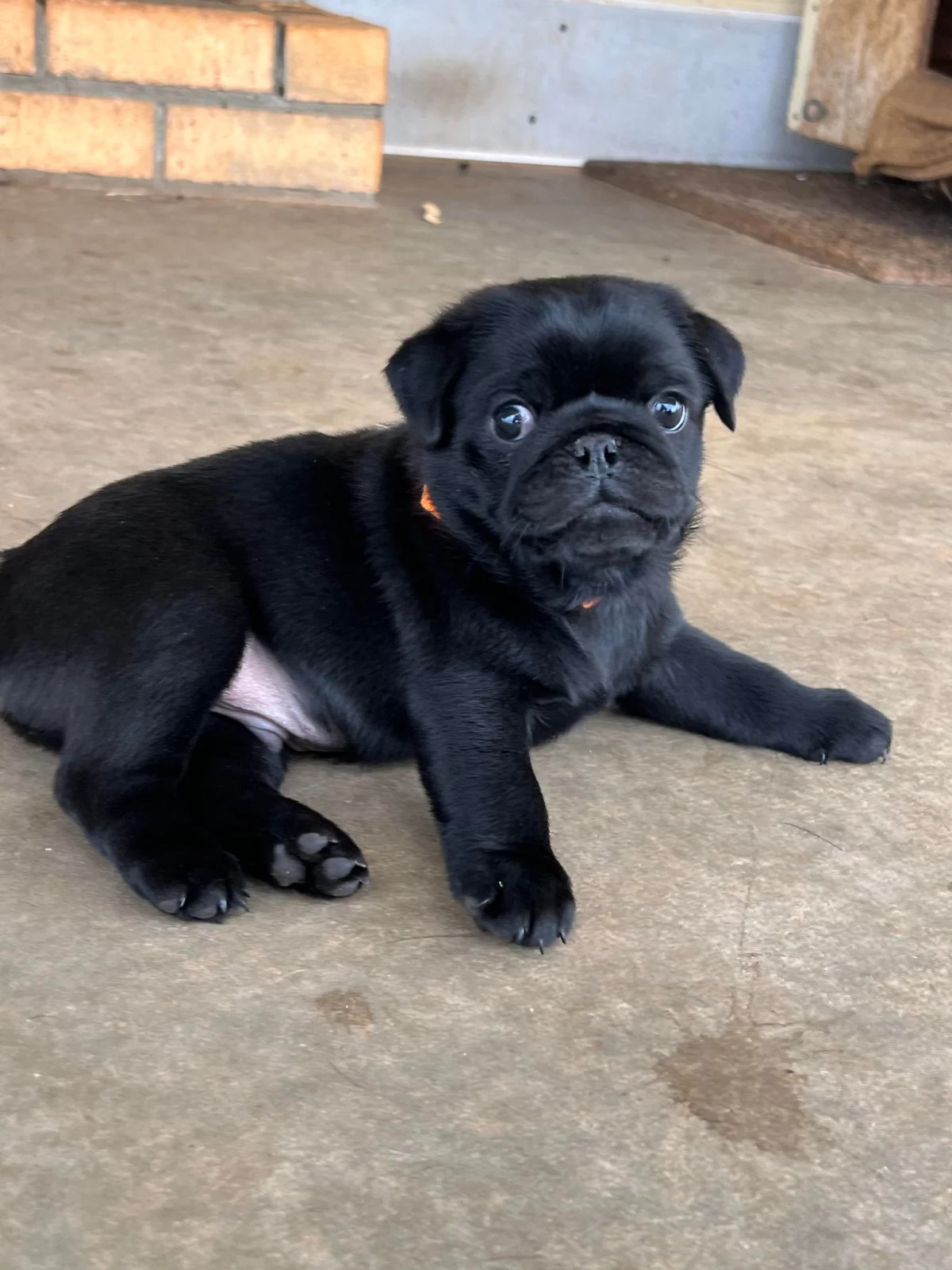 Purebred Pug puppies, 3 black males and 1 black female, sold without papers. Date Of Birth 15/10/23. They will be up to date with worming, vaccinations, and microchipped.