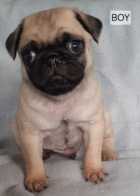 We are delighted to offer three beautiful purebred fawn pug puppies to loving homes. Born on 08/09/2024, these adorable little ones have been raised with care in our family home, surrounded by people of all ages and other animals. They have been given the best start in life and are now looking for their forever families.