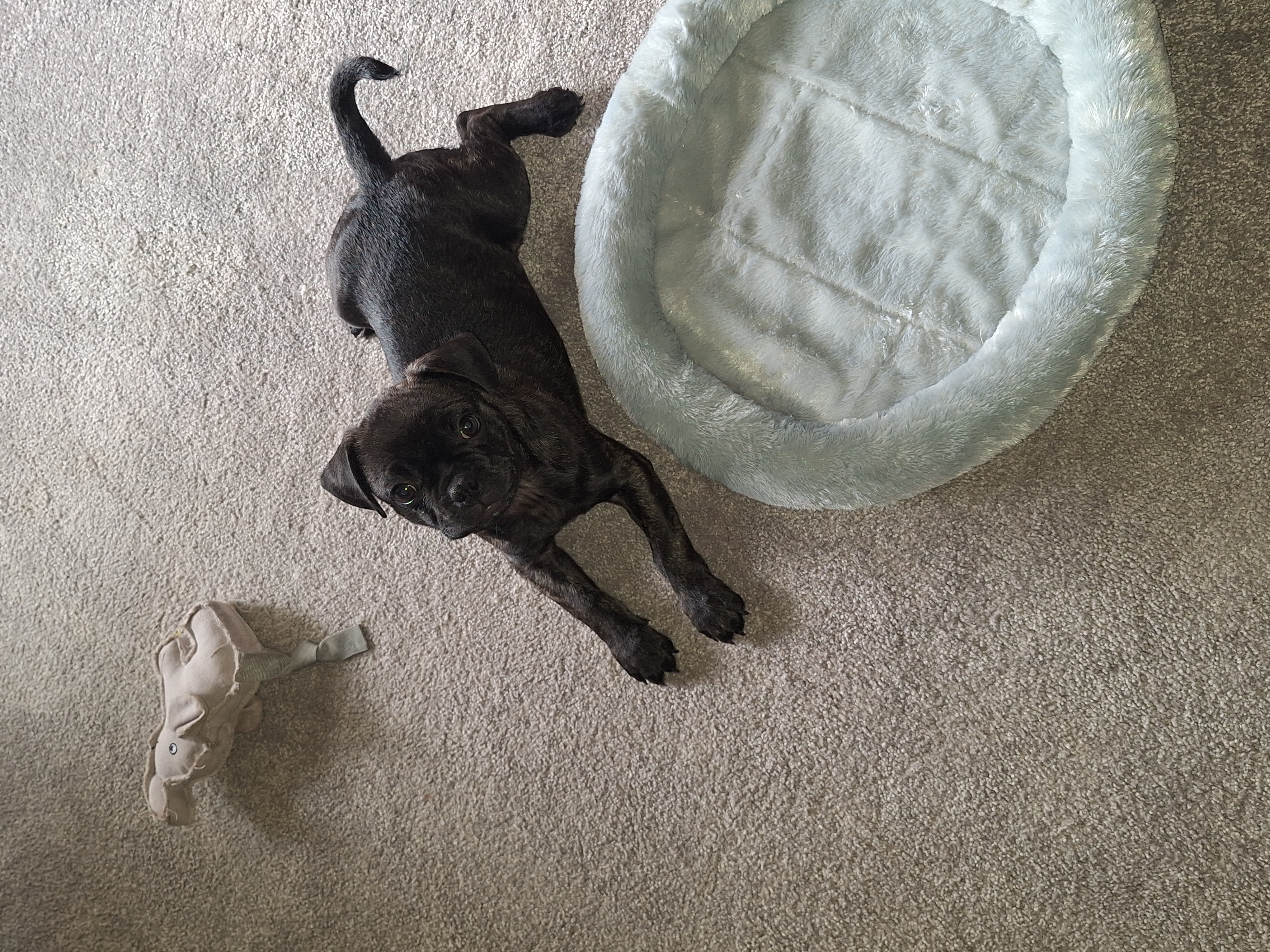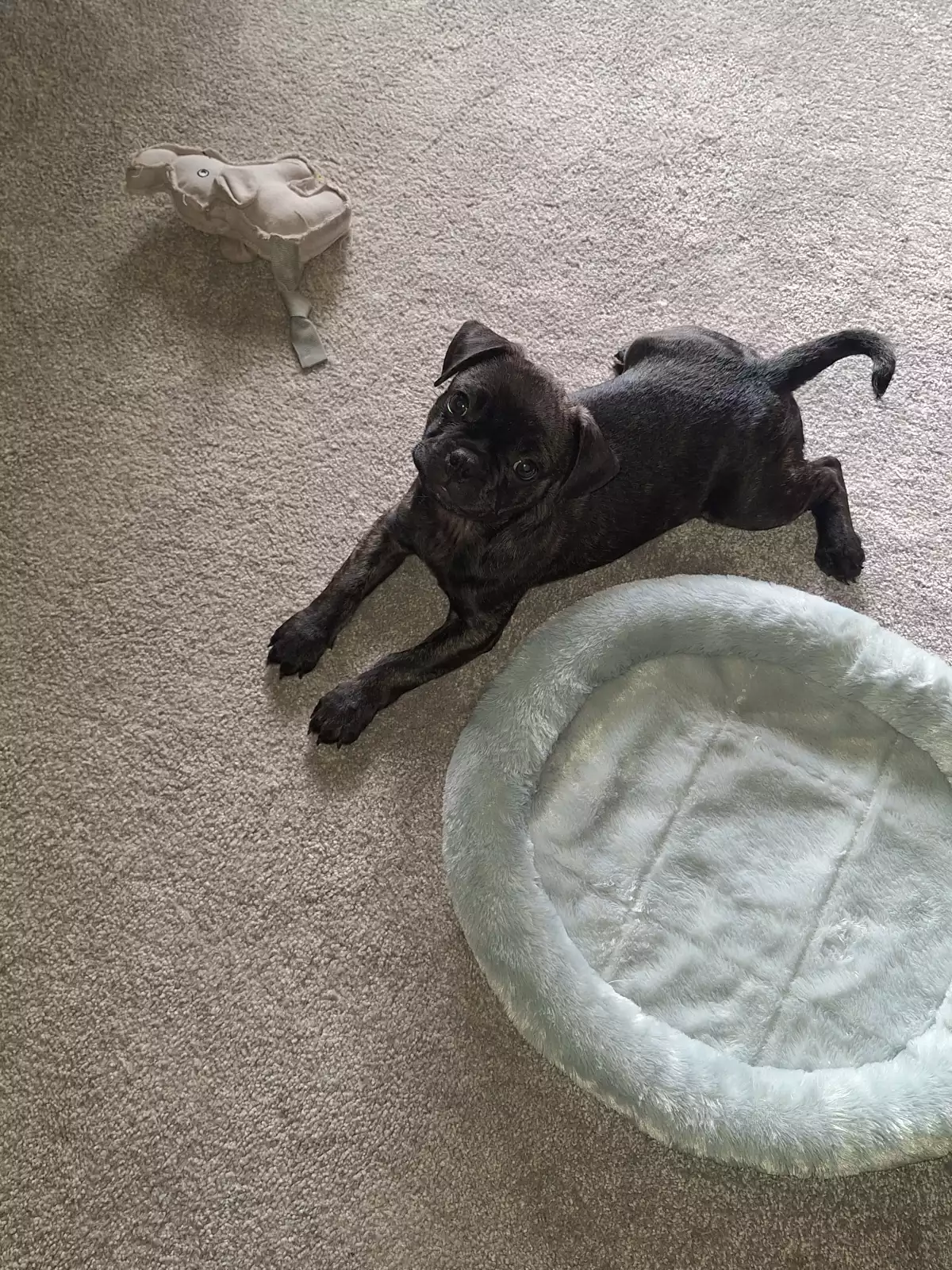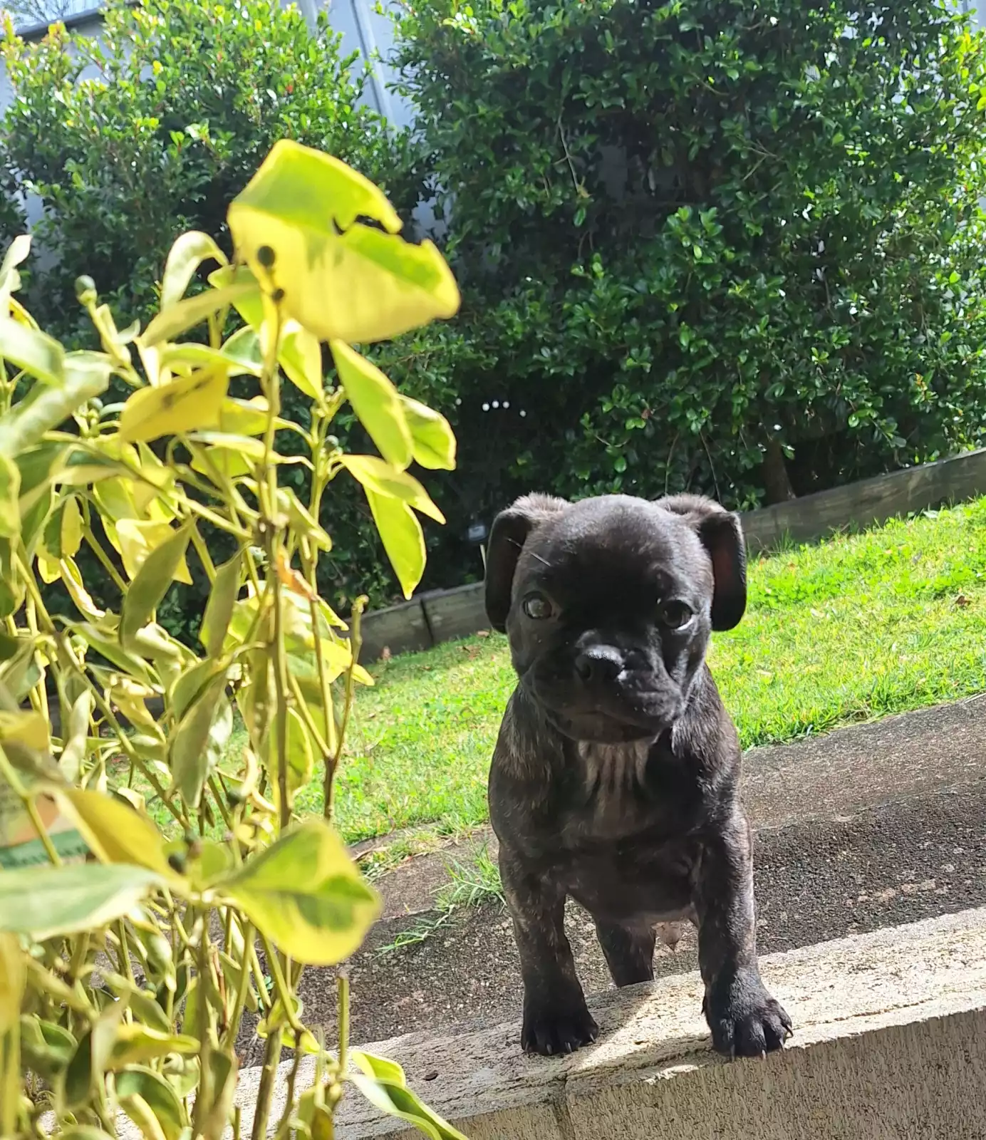 Born on 26th April, he has already had all of his vaccinations, giving you peace of mind that he is healthy and well cared for. With a slightly longer nose than most Frugs, he has no breathing issues, which is a big advantage for this breed.
