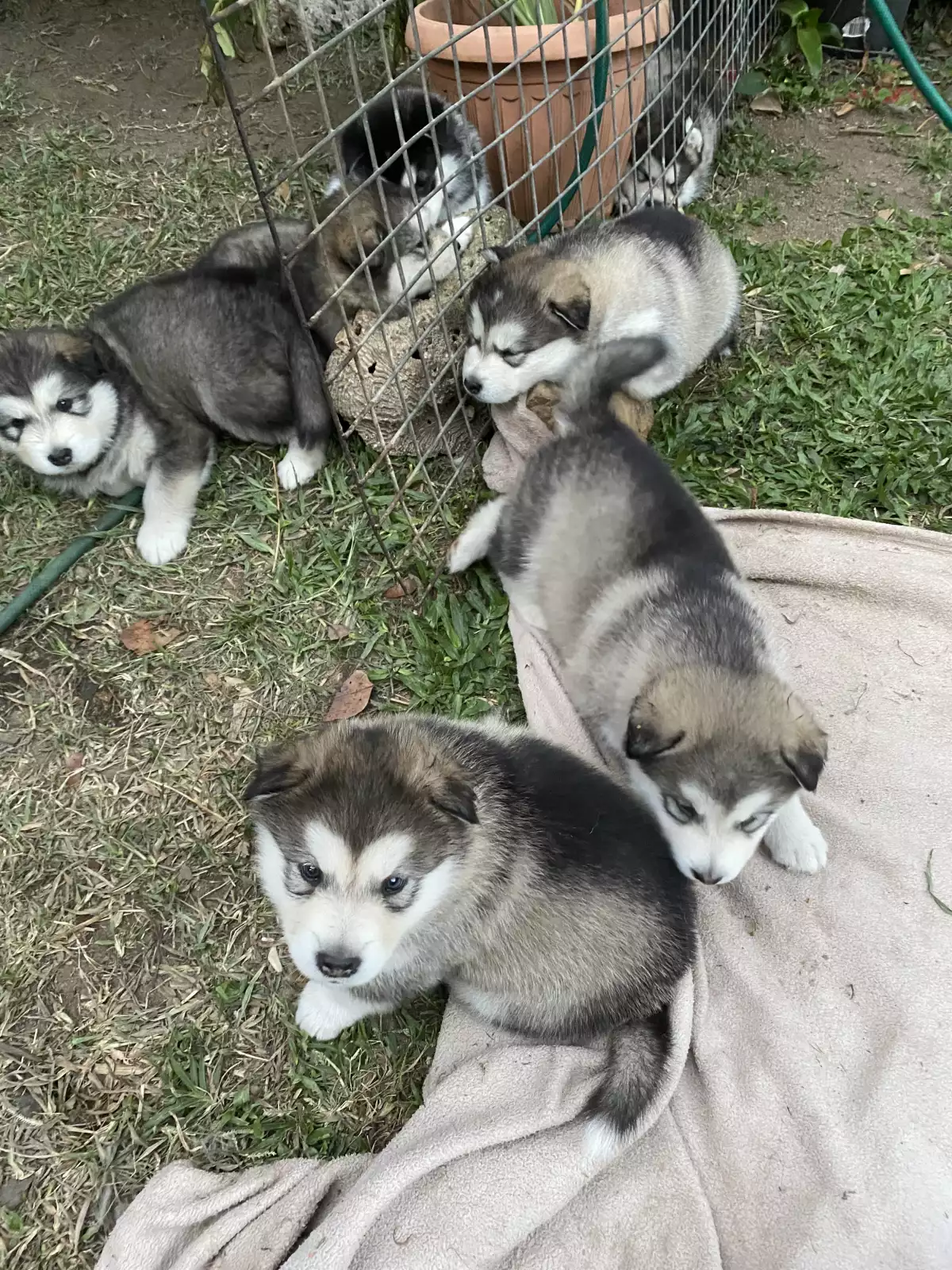 We have seven beautiful pups ready to meet their new families, offering a great selection of coats and genders! We have five gorgeous females and two handsome males available. The puppies feature the striking colours typical of Northern breeds (like Malamutes or Huskies), including classic Black and White, and beautiful Grey and White combinations. They are ready to bring their loyal, affectionate, and energetic nature into a loving home. Don't miss the chance to welcome one of these stunning pups into your life! Send me a message and let's talk!
