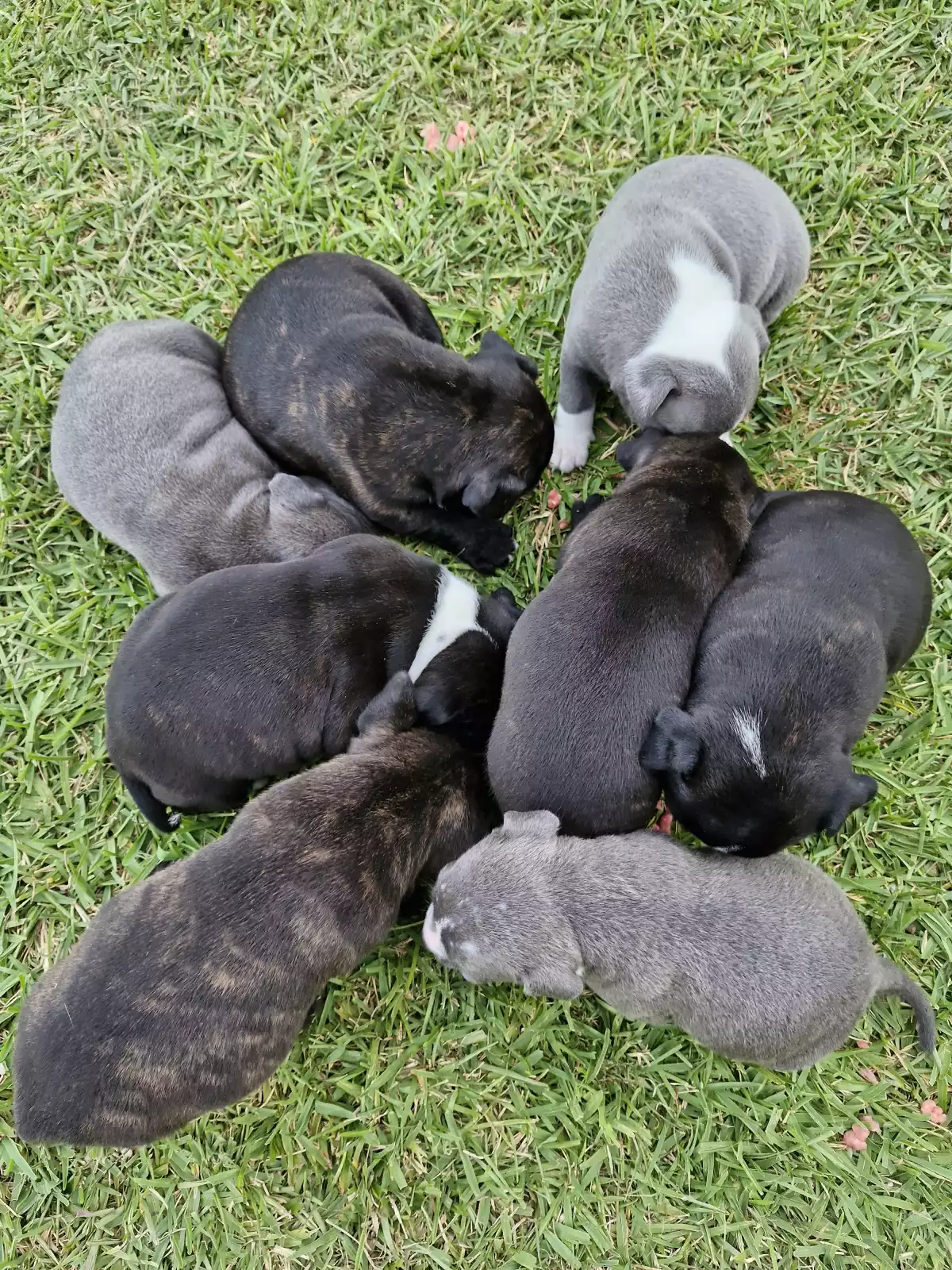 Pure-bred blue and bluebrindle English staffie pups. 4 males and females. Born on 24.10.2024. Will be ready for their forever homes on 24.12.2024 or the week of Christmas.