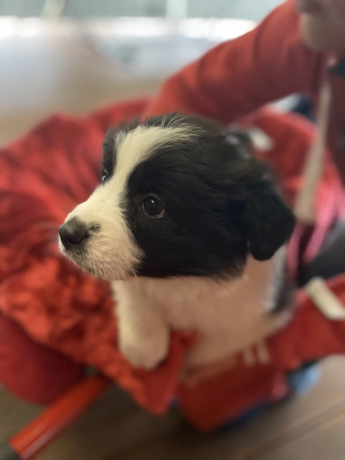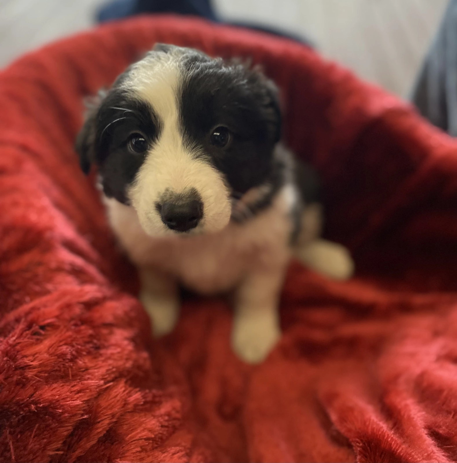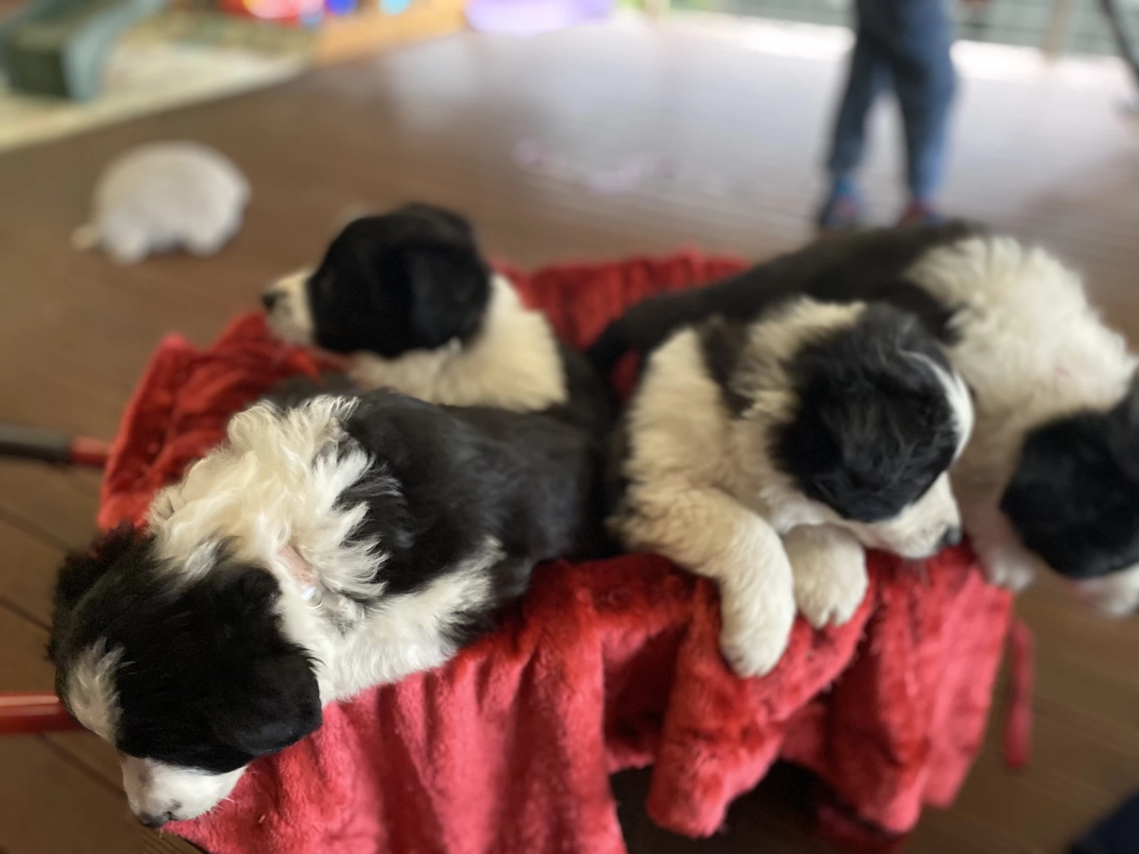 Four black and white girls and one black and white boy for sale. All are in good health, vet checked, wormed, vaccinated and microchipped. These puppies have been raised in a caring environment with regular handling and plenty of interaction. They are playful, curious and enjoy human company and cuddle time. The pups are growing well and starting to show their own little personalities. They are used to everyday household activity and are settling into early routines. These puppies would suit families or individuals who can provide time, guidance and regular activity as they grow. Looking for loving, responsible homes where they will be well cared for and included as part of the family.