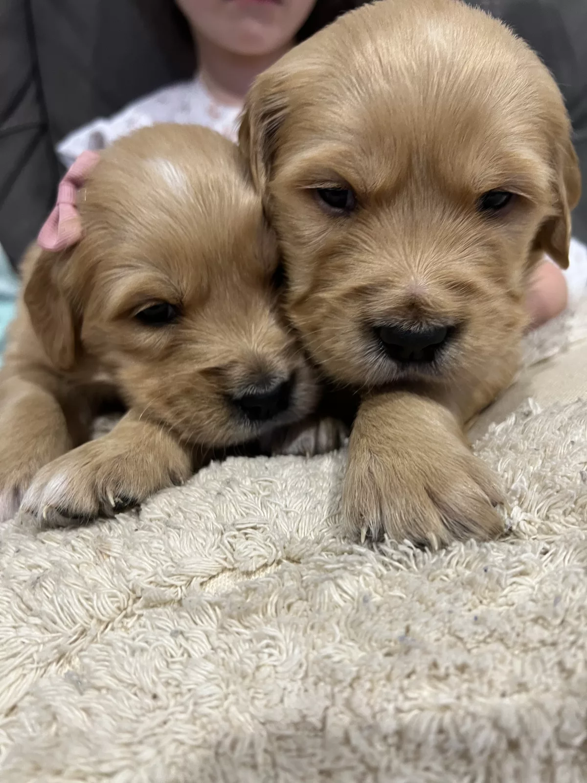 Puppies are solely on mums milk until 3-4 weeks and then will be weaned onto Royal Canin wet and dry puppy food, as well as still drinking from mum until around 6-7 weeks. Puppies will then be ready to go to their new homes only after 8 weeks of age, once they have had their vaccination and microchip (usually done around 6 weeks). Puppies will also be vet checked at 6 weeks to ensure their health. They will come with our puppy pack full of information, a starter pack including the food they have been on, some treats, a toy and a blanket that smells like mum.