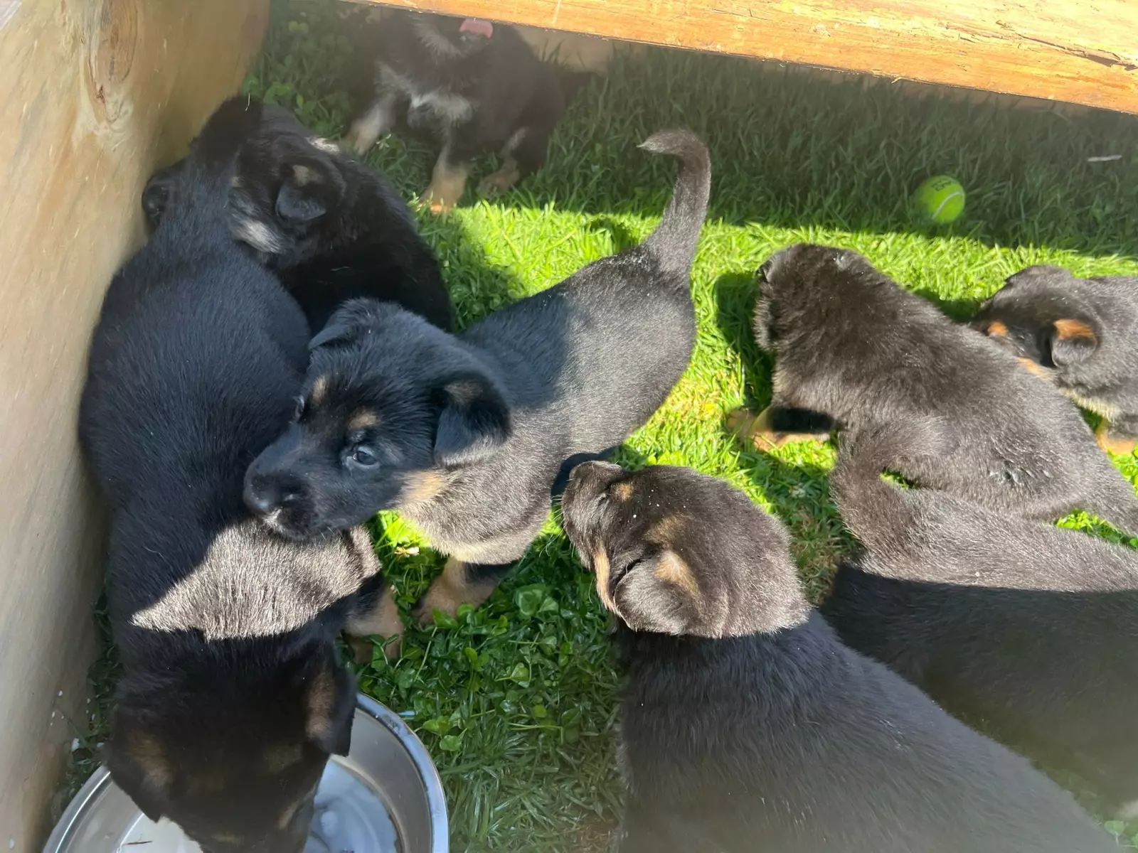 Meet our stunning litter of ten purebred German Shepherd puppies — eight males and two females — all displaying the classic black and gold coats this magnificent breed is known for. Each puppy has a beautiful temperament. They are full of curiosity, confidence, and affection. They have been well socialised, raised in a caring environment, and are thriving in both health and personality.