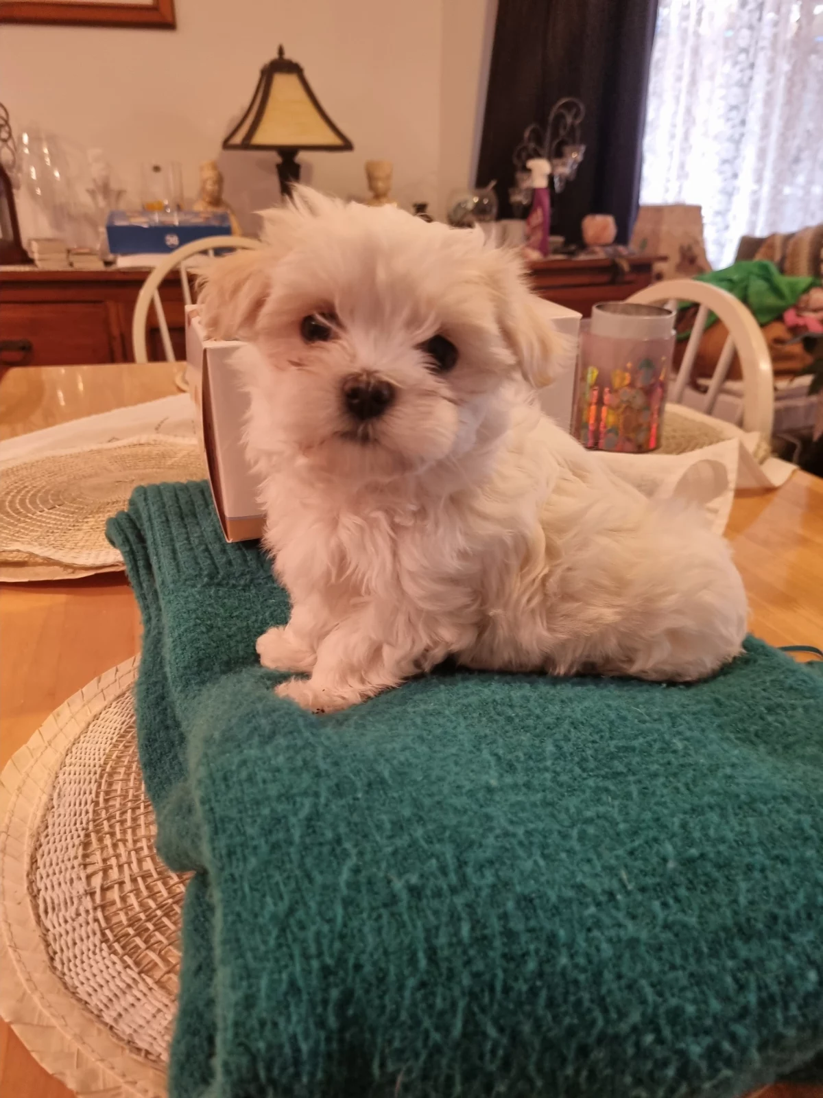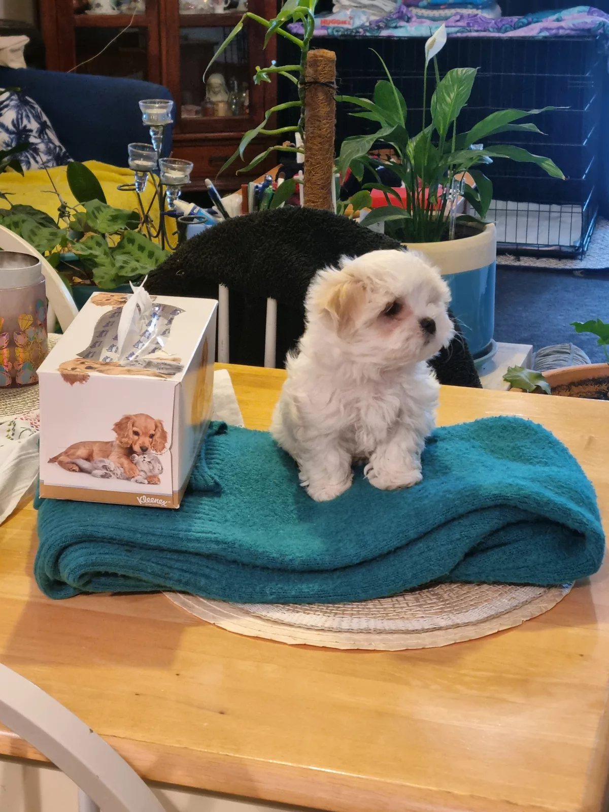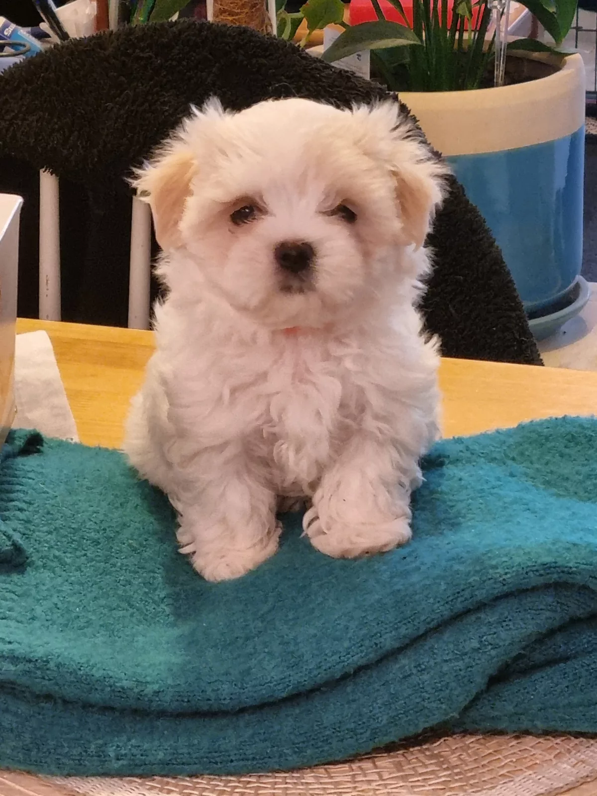 Pure breed maltese puppies. Mother normal size, father Toy size. Pictures of puppies 2 days off from 8 weeks old. These puppies will not be very big at all.
