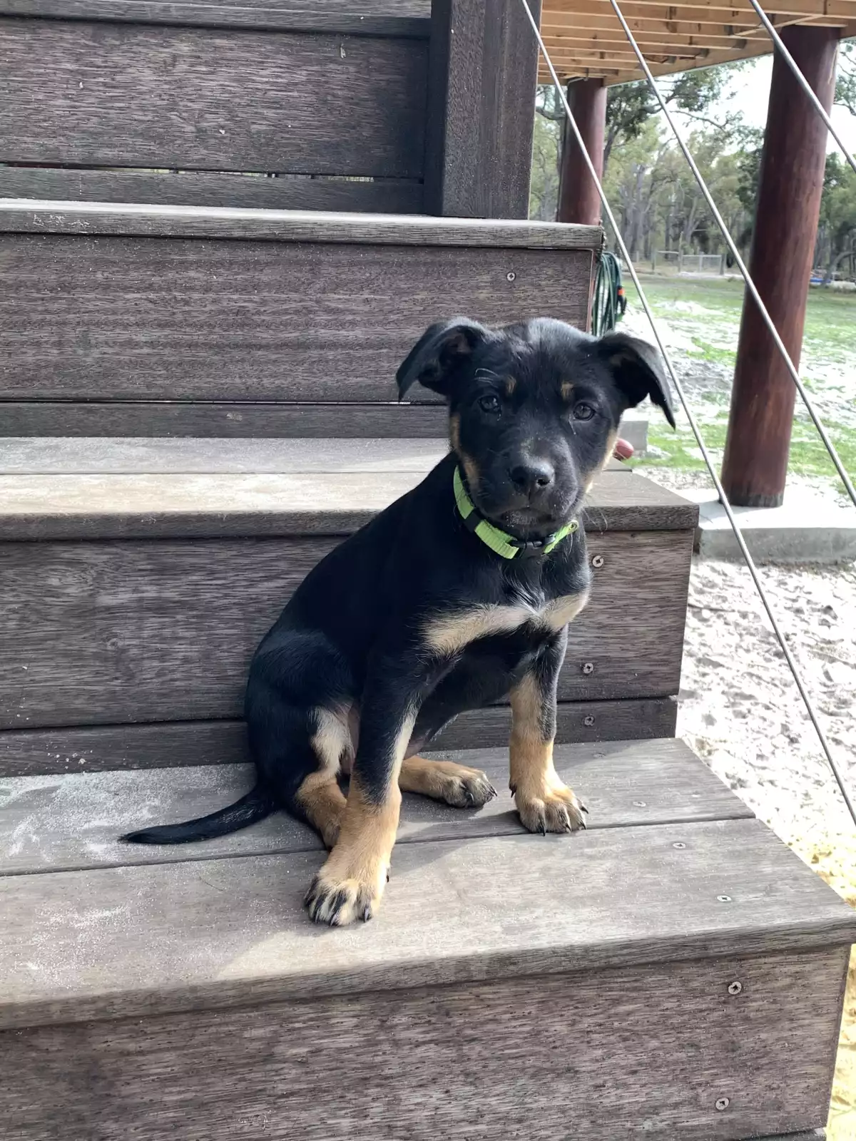 Purebred Australian Kelpie pups. 4 x Male and 3 x Female left. 6 Black and Tan and 1 Brown and Tan male. DOB 28/05/23. Vet checked, 1st vaccination and microchipped. Parents and Grandparents are working dogs of both sheep and cattle. Great natures and very friendly and sociable.