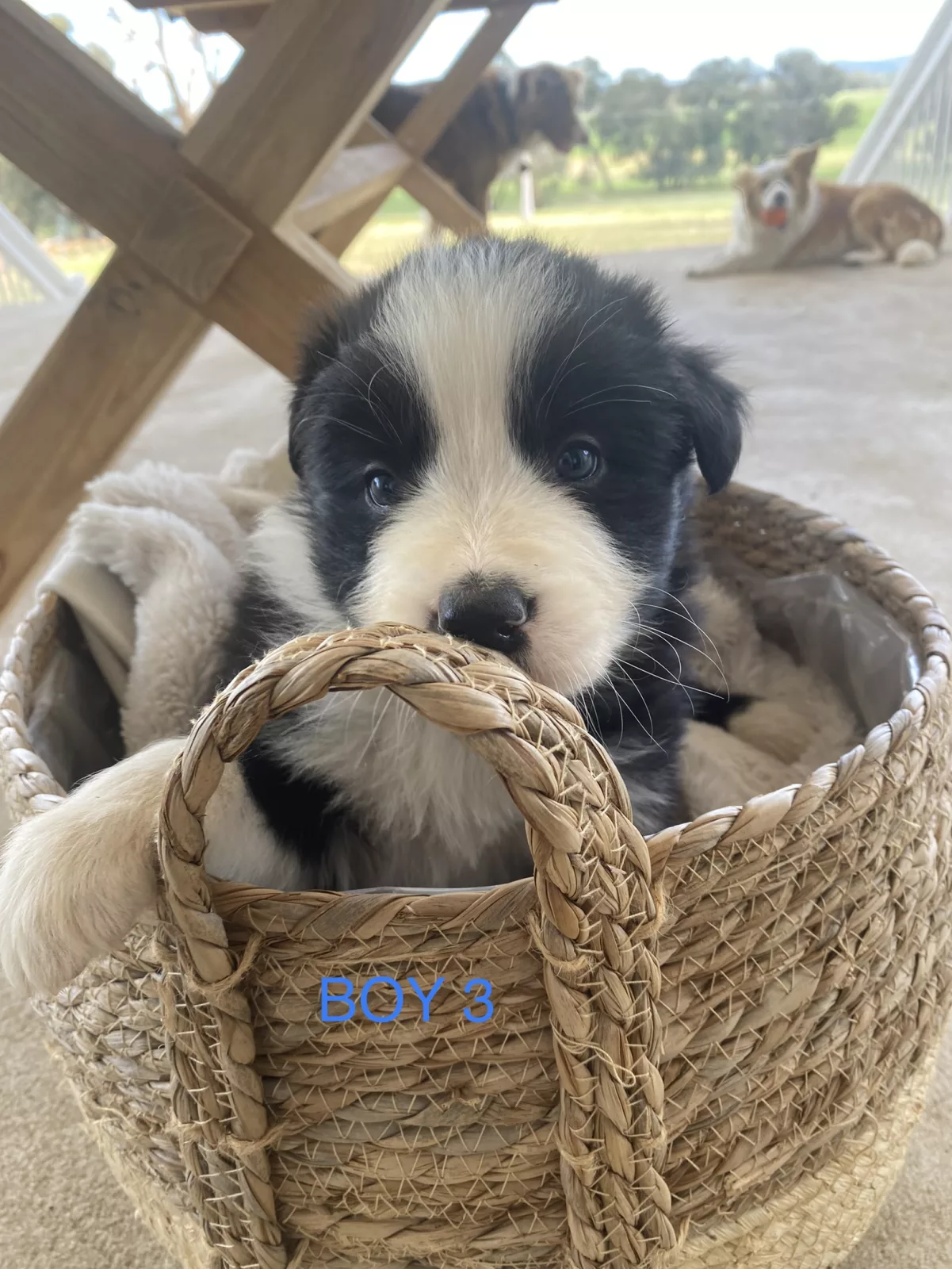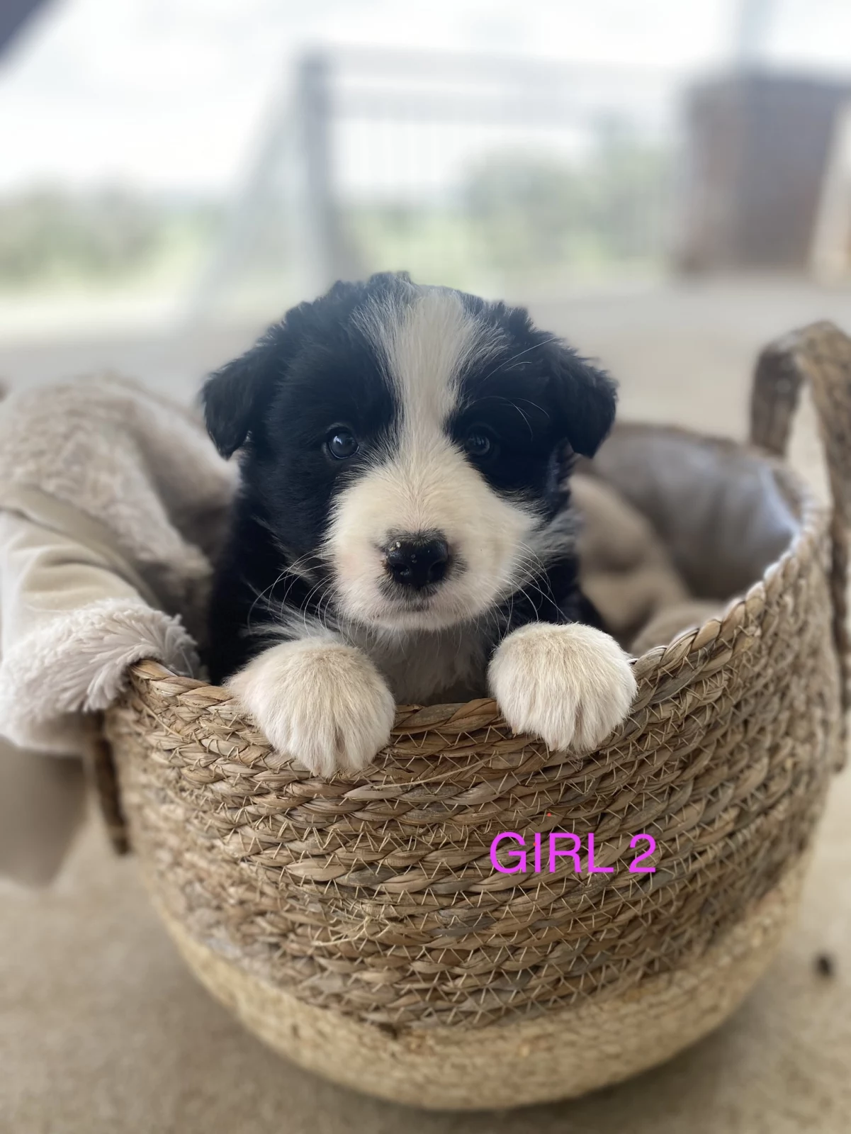 6 Gorgeous black and white Purebred Border Collie Puppies! The puppies were born on the of 1st of September. They are long haired, 3 girls and 3 boys available. They will be ready for their forever homes once they are 8 weeks old (27th of October). All pups are in perfect health.