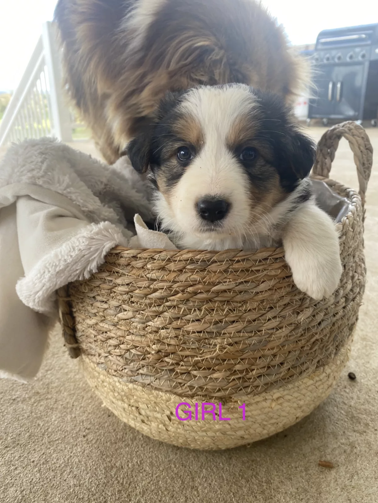 Mum is a long haired red and white Border Collie and is very loving, gentle and family orientated.