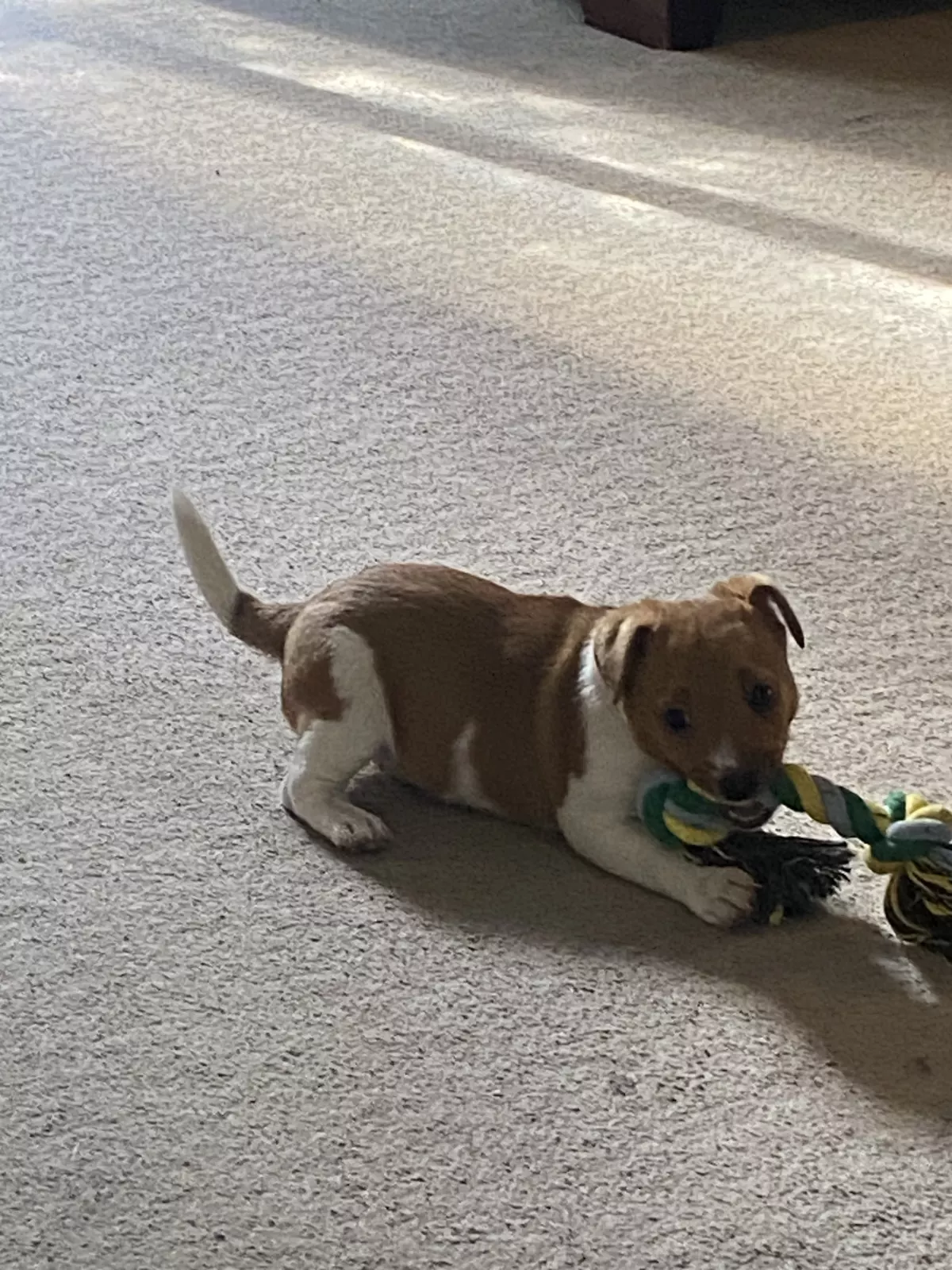 Male Jack Russell Puppy ready for his new home. Purebred short hair male. Brown and white colour. 9 weeks old.