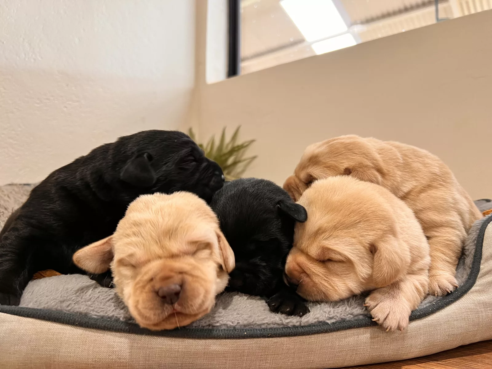 Both parents are healthy dogs with good elbow and hip scores. Dad is a beautiful chocolate Labrador and is DNA clear of 16 genetic diseases. Mum is a lovely golden girl who is doing a wonderful job raising her pups.