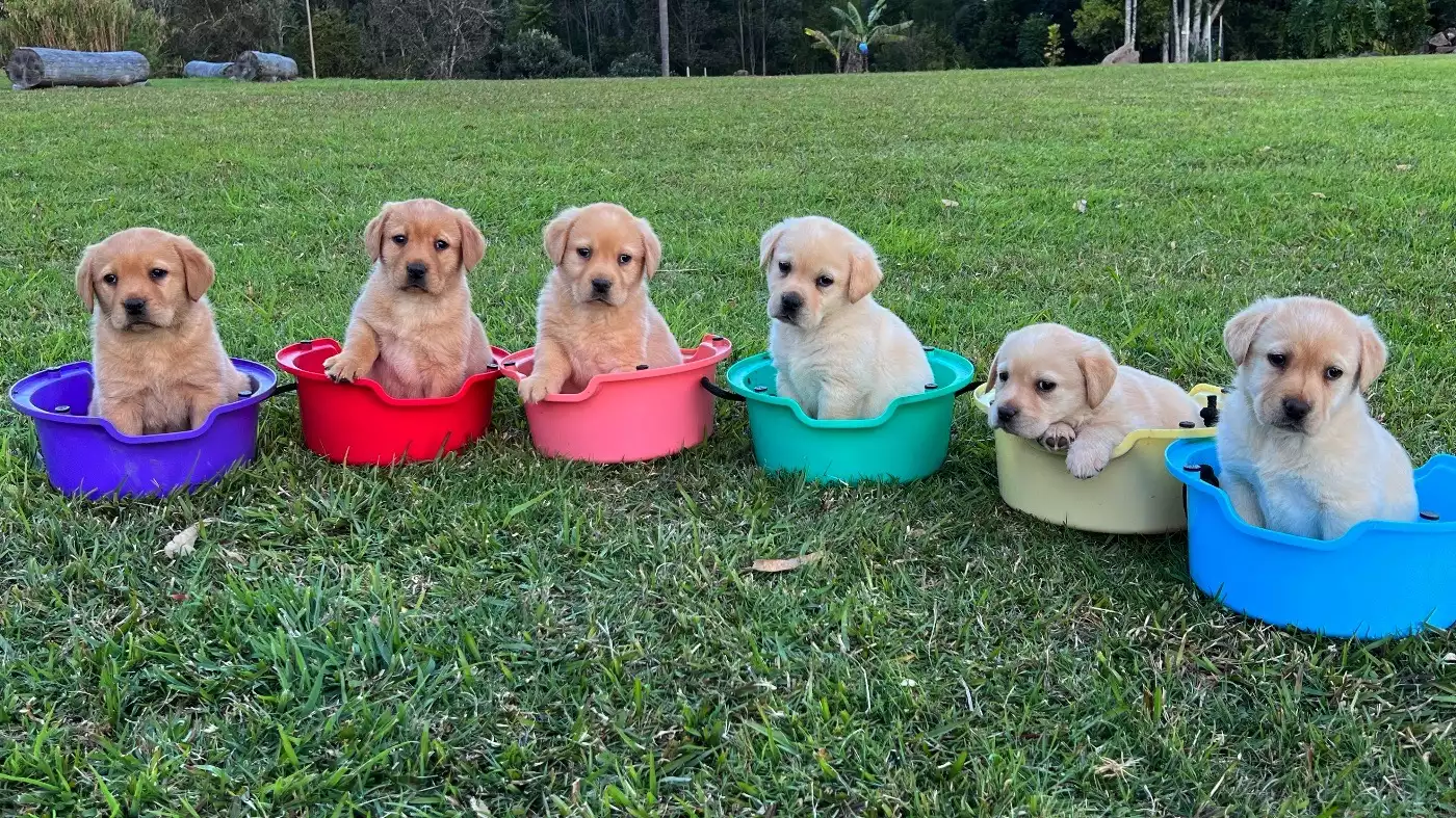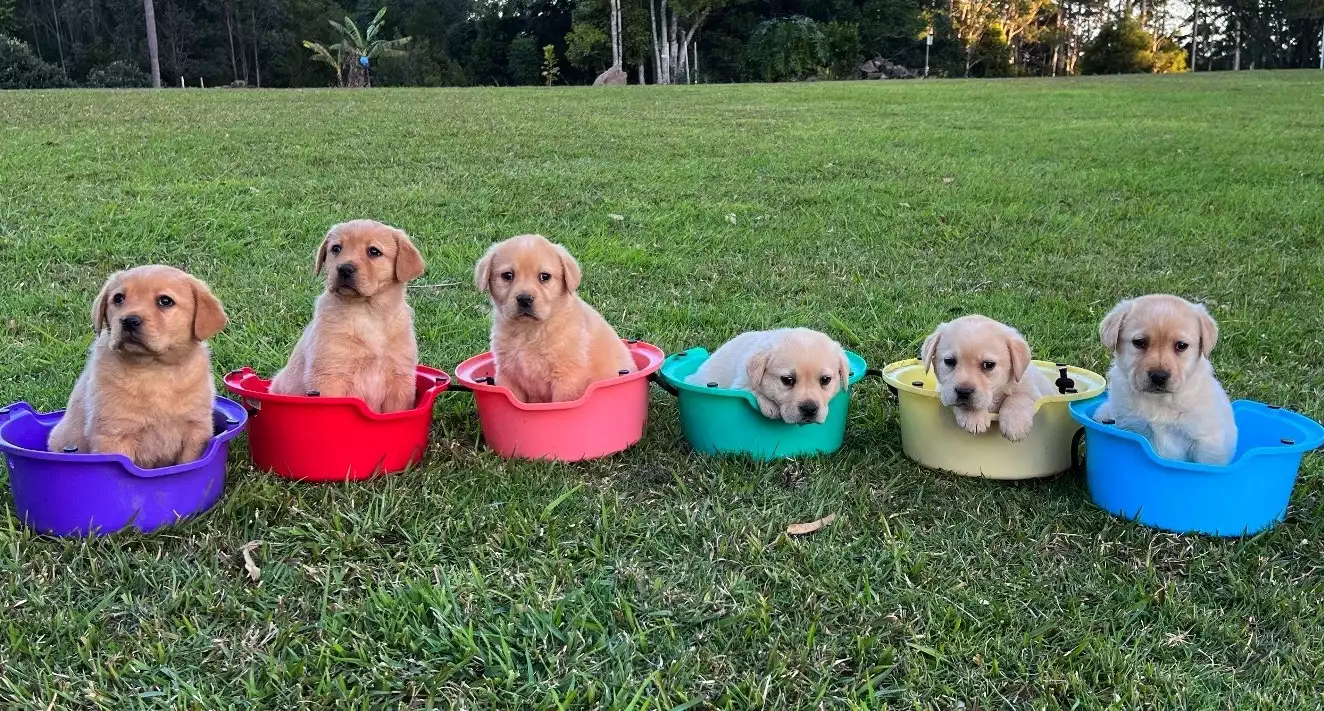 These beautiful pups were born on 16 June and are ready to go to their new homes now! They are healthy, vaccinated with a full C5, microchipped, wormed and on heartworm and flea/tick prevention, and have been bred and reared by vets. All the documentation for the vaccination, healthcare, and microchip will be provided in the Puppy Packs. They are purebred (no pedigrees), have great temperaments: happy, sociable, well-adjusted, eager to please, and very affectionate. Like all Labradors, they love people, especially children. They have been reared with plenty of interaction with children, including our toddler granddaughter. They are the perfect family dogs - they can't wait to have a family to love and play with!
