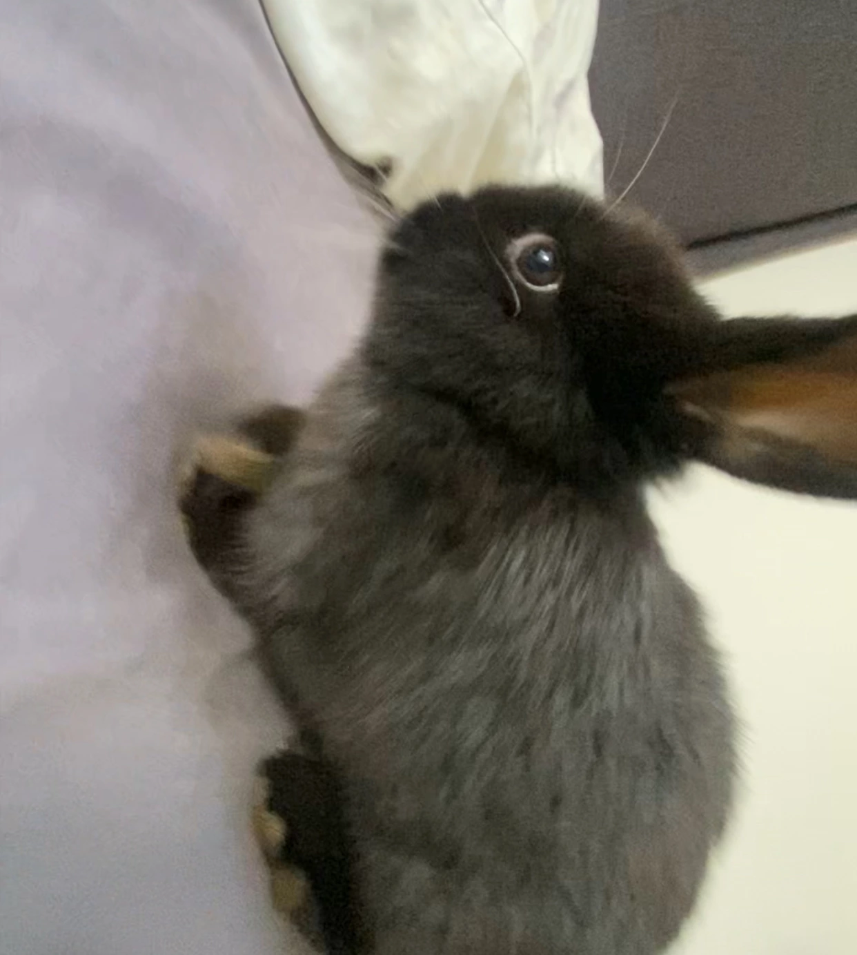 She’s a 7 month old mini lop x dwarf rabbit born 2nd of November 2024. Mabel is not a people person rabbit but she still has a lot of time ahead of her to learn. She loves roaming around and gets along well with our family cat.