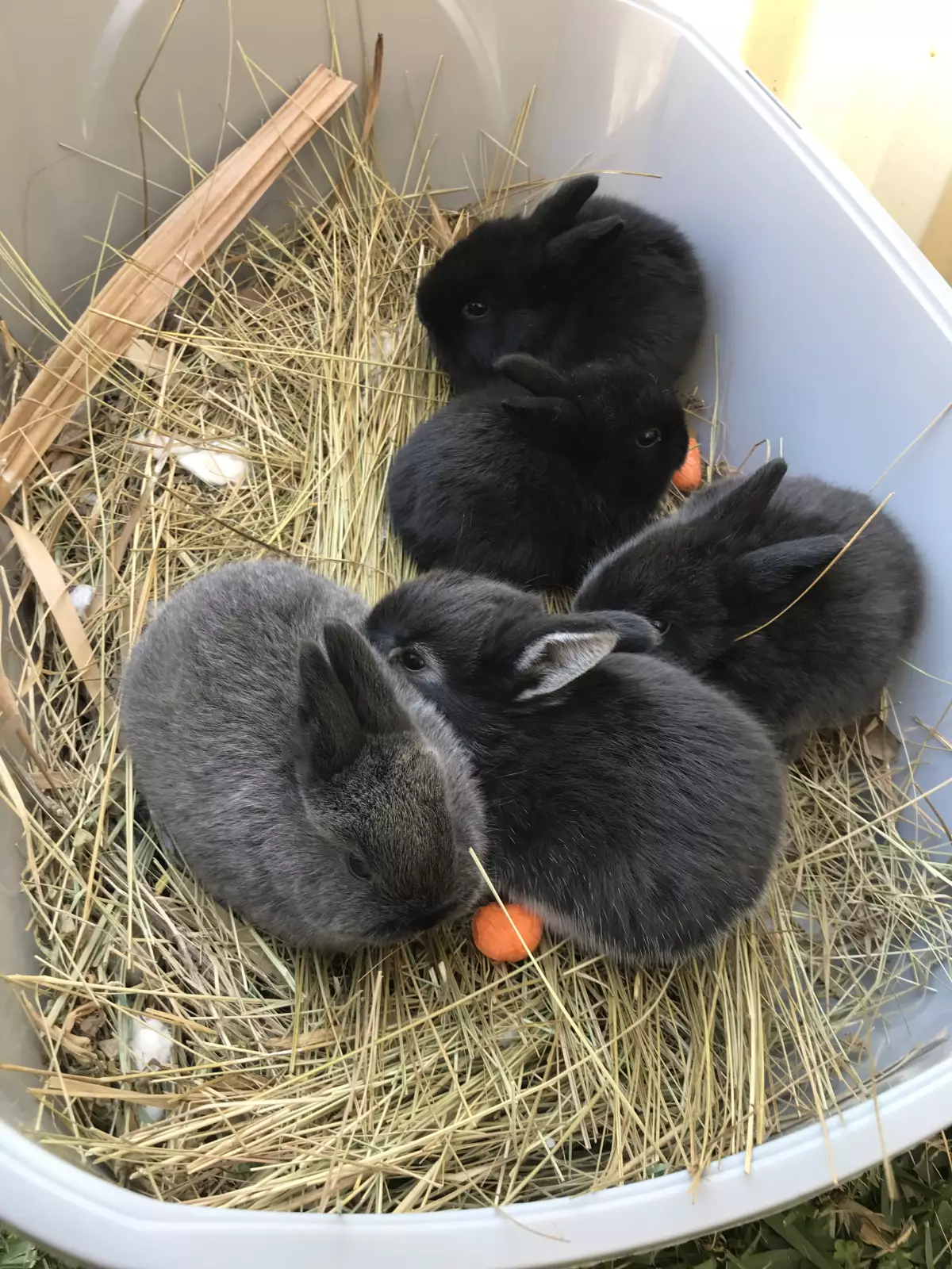 6 newborn little bunny, black & Grey colour, male and female, Panania NSW. Please txt 0466836113 if you like to buy. $50 each.