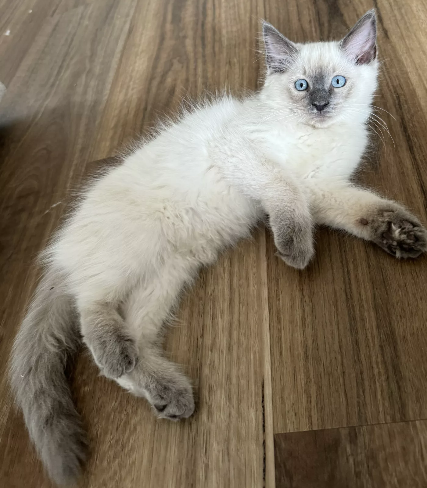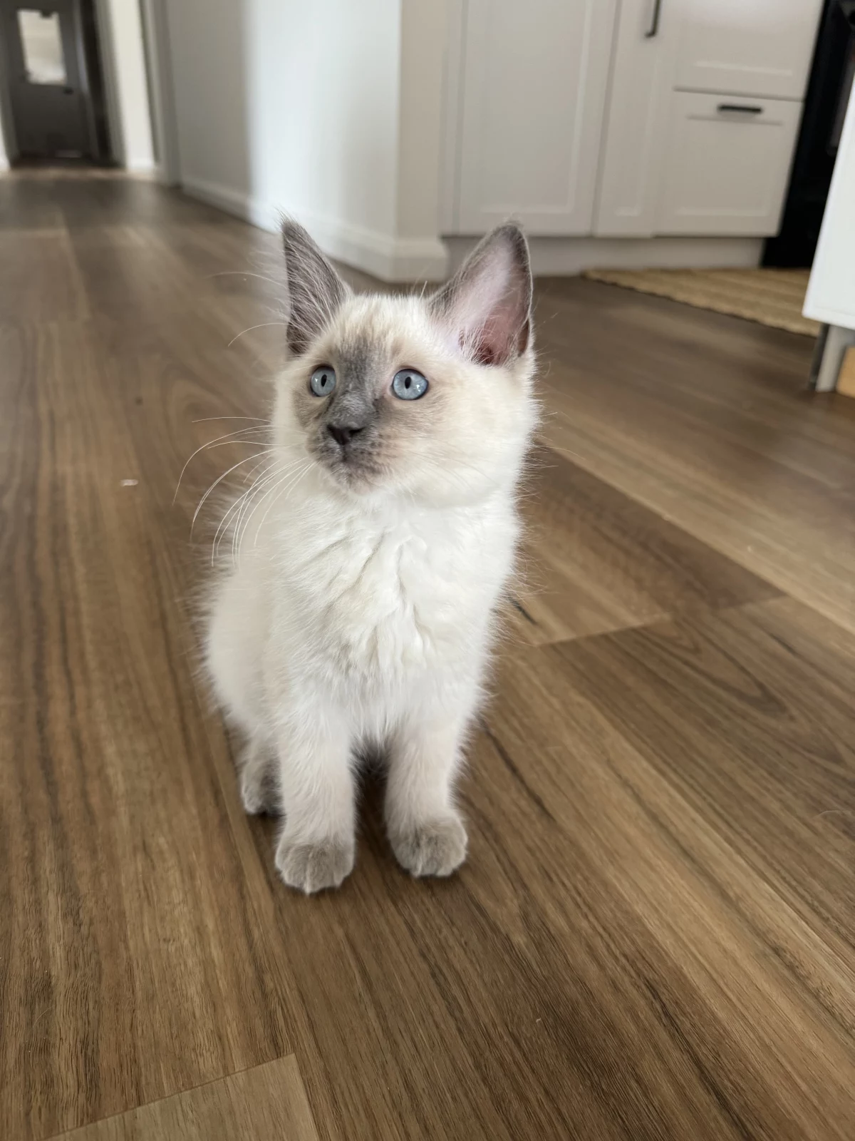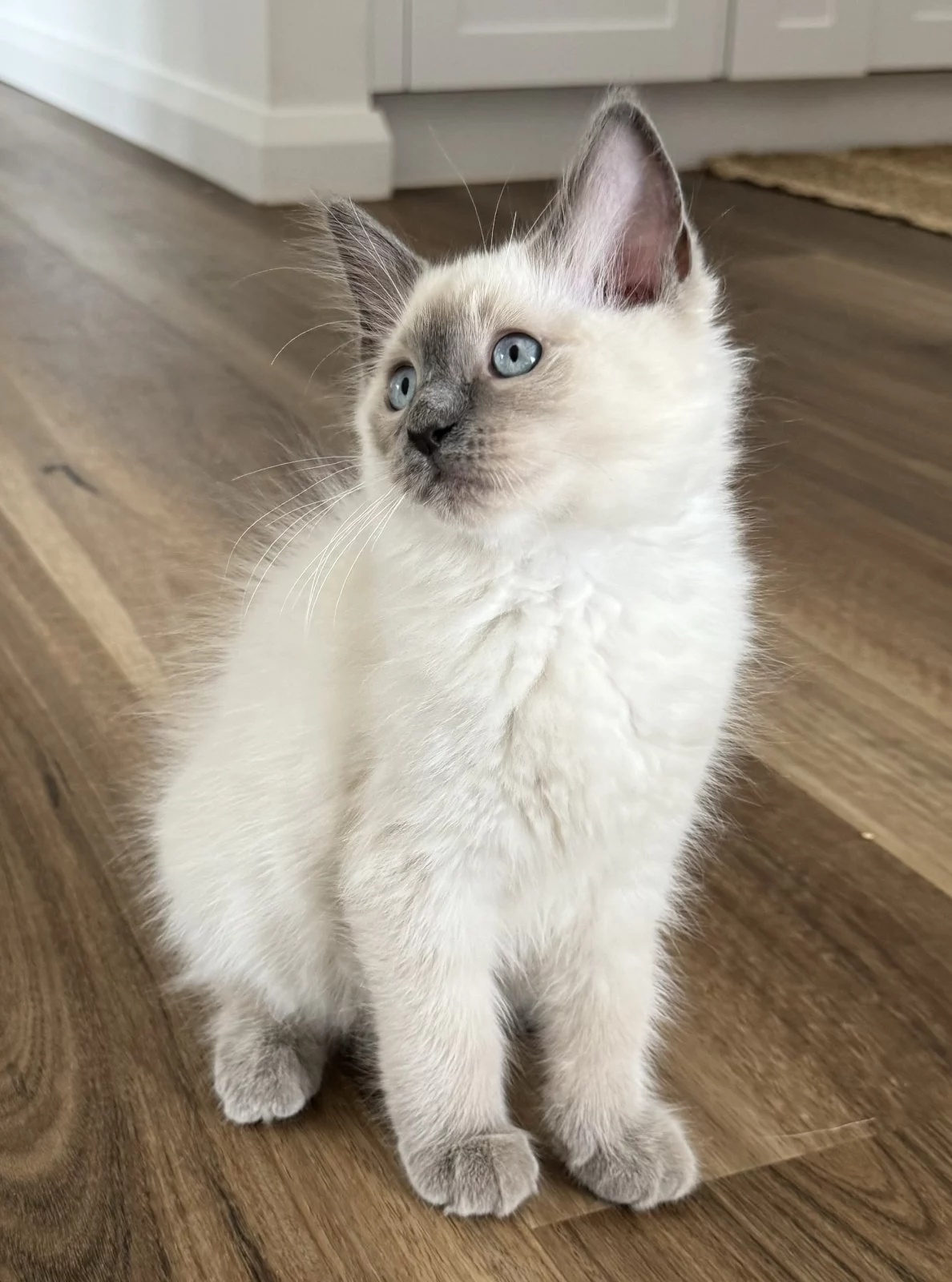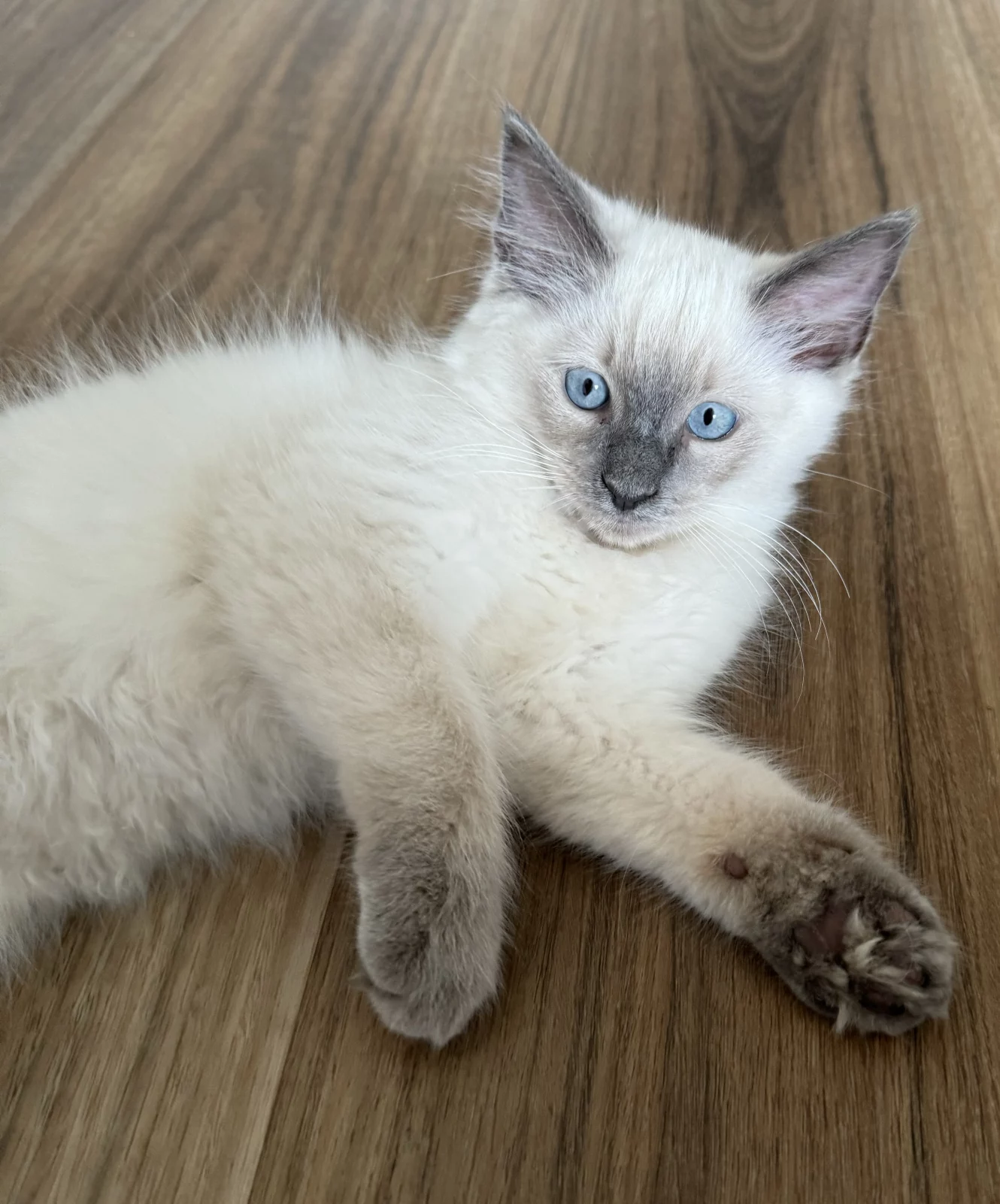 This beautiful Ragdoll kitten has a calm and loving temperament, making him an ideal companion for families or individuals alike. With his soft, plush coat and bright blue eyes, he’s as striking as he is sweet-natured. Raised in a caring home, he is well-socialised, enjoys playtime, and adores being cuddled. He’s fully litter trained, healthy, and comfortable around people and household sounds. This affectionate little boy is ready to bring warmth, love, and joy to his forever family.