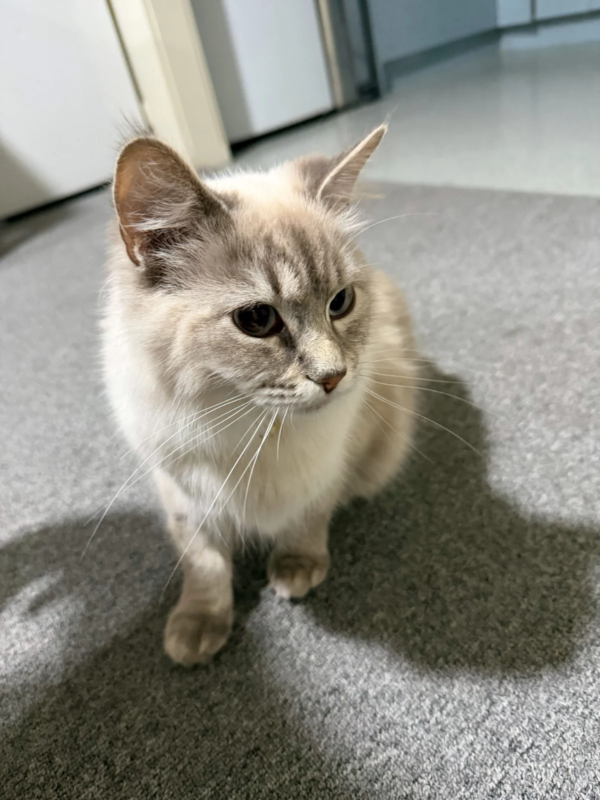 Meet Snowy, female, 1 years old. Snowy is a pure ragdoll. Snowy is litter Trained, but does not like it when the litter is full. Her eating schedule is simple she eats breakfast at 8:30am, lunch at 2pm and dinner anytime after 7pm.