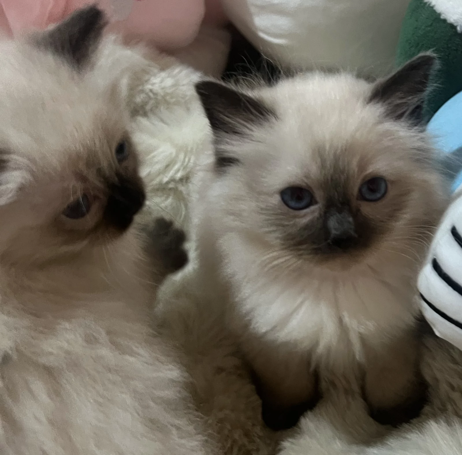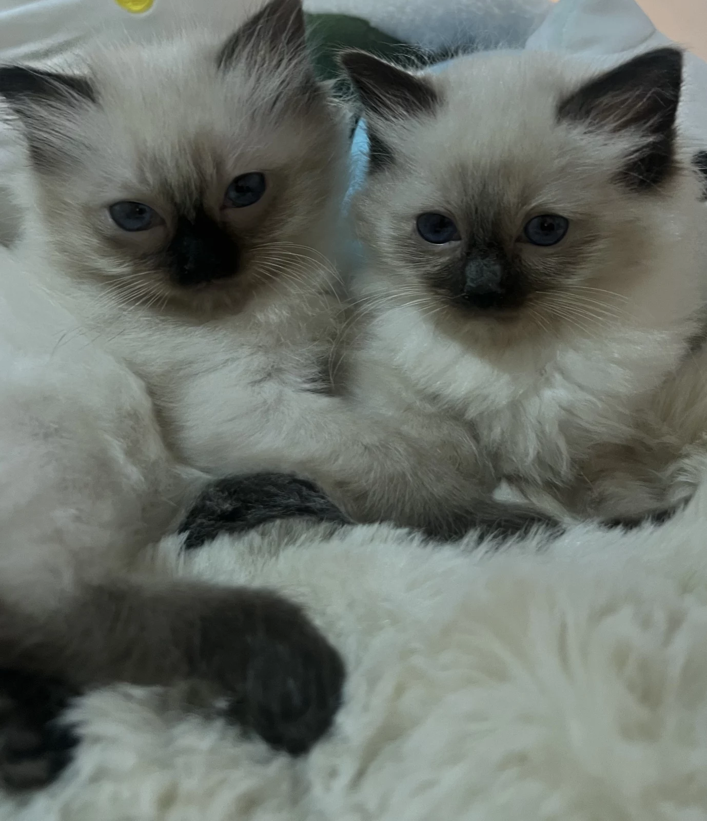 Meet our adorable Ragdoll kittens ( 2 females and 1 male ) , ready to steal your heart! These sweet, affectionate kittens are known for their striking blue eyes, soft, luxurious coats, and gentle, laid-back personalities.