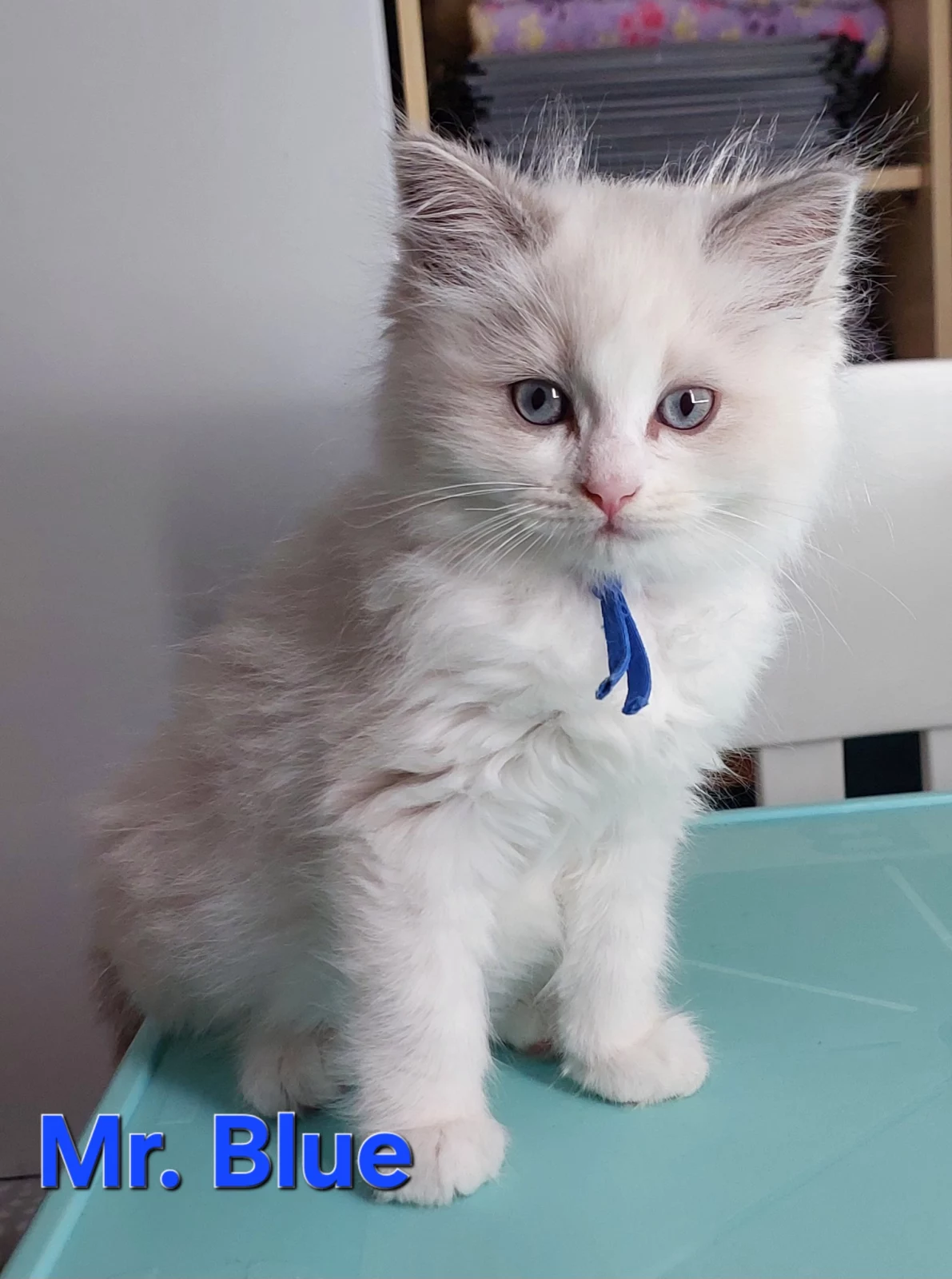 Our mom is a Blue Point Ragdoll, and our dad is a pedigree Blue Bicolor Ragdol.