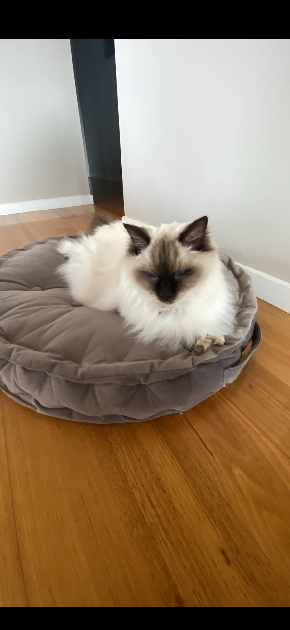 Male Ragdoll cat. Very affectionate cat, loves being brushed and just laying around. He is an indoor cat, and uses the litter tray. He is approximately 12yrs old. Great with kids and adults. Needs to be rehomed asap!