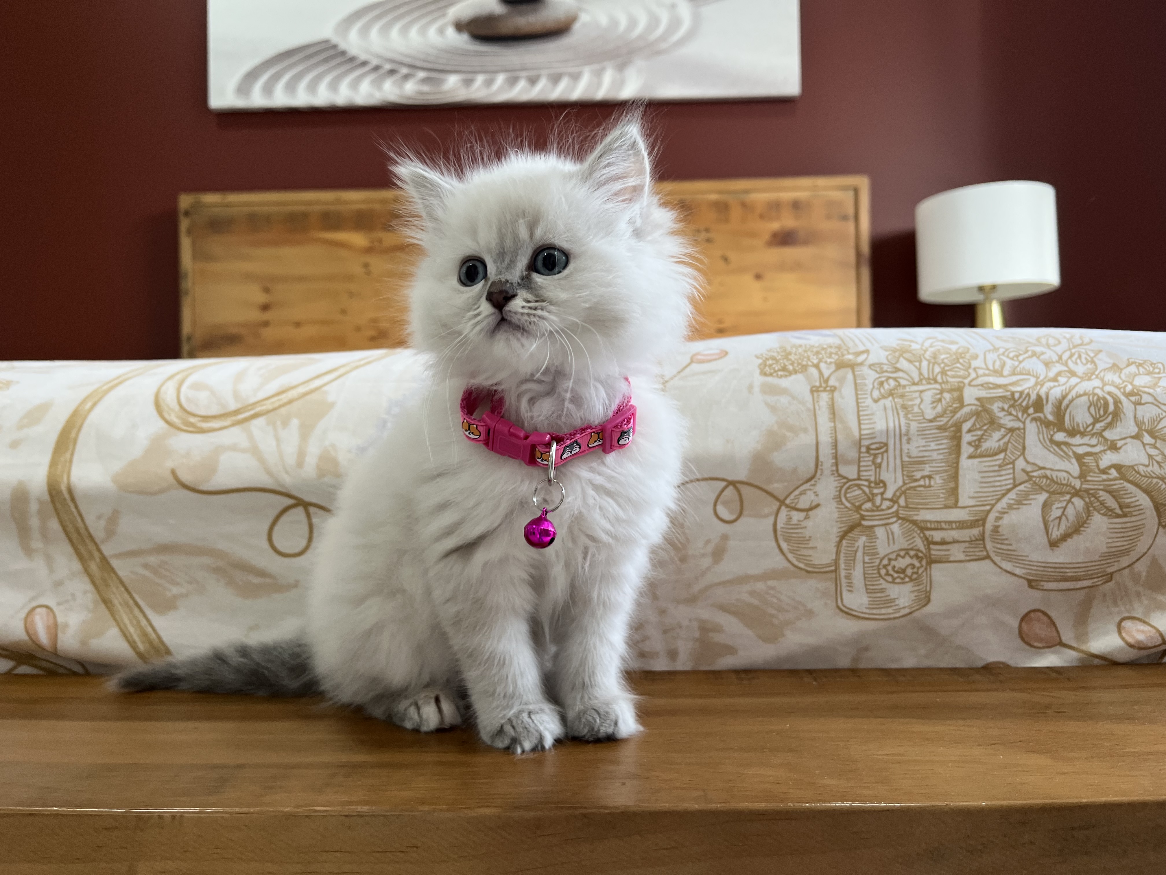 💖Kitten 1: Female light cream with sparkling blue eyes – gentle, playful, and loves cuddles.